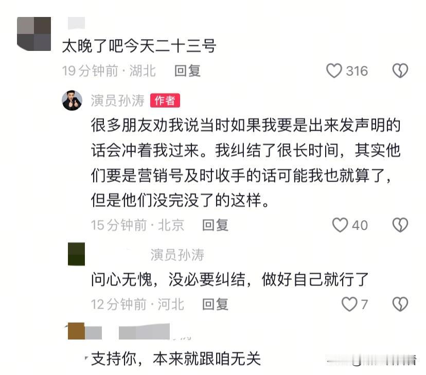 孙涛正式对力挺闫学晶这件事做出回应,他表示回应晚了,应该第一时间出来回应的,被网
