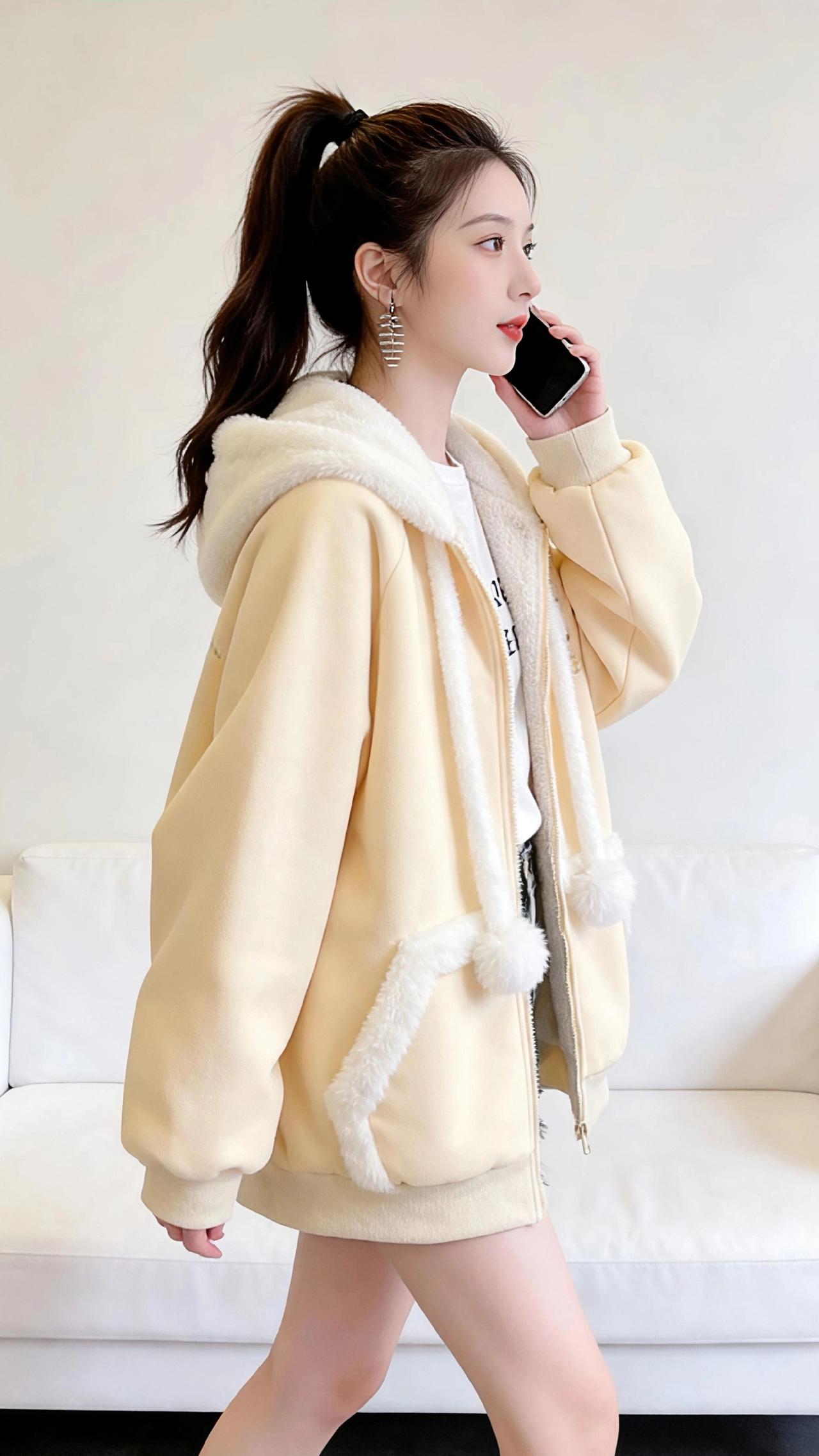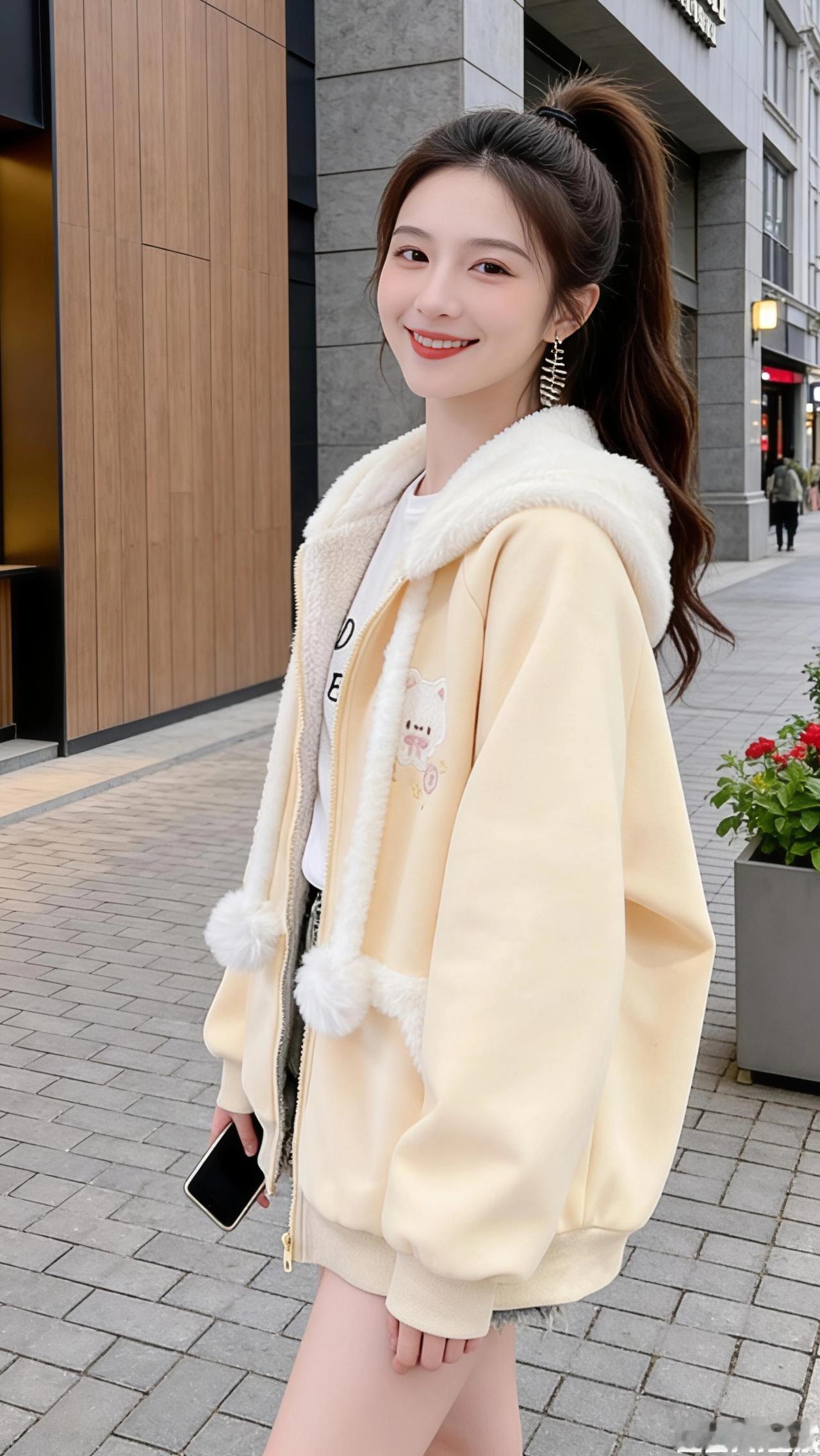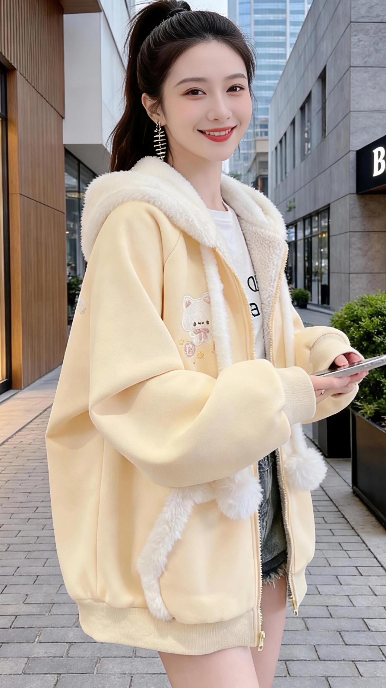 浅黄外套里的城秋 风掠过街角的梧桐时,我正穿着这件浅黄外套站在街边。 像把半捧桂花揉进了布料里,暖黄的底色裹着一圈蓬松的米白绒毛,连帽垂下来的毛球随着步伐轻轻晃着,像把秋日的软云别在了衣摆。 我沿着砖红色的步道走,路过木质纹理的店铺外墙,玻璃橱窗里暖黄的灯光漫出来,给外套镀上一层温柔的光晕。口袋边的小熊刺绣在阳光下泛着细闪,路过花店时,店主笑着说:“你的衣服和这向日葵一样暖。” 正午的阳光穿过高楼缝隙,落在肩头,绒毛里便攒了细碎的暖意。我靠在街边的栏杆上,指尖划过毛绒的边缘,远处写字楼的玻璃幕墙反射着天光,和衣服上的米白绒毛相映成趣。 偶尔抬手拢一拢被风吹乱的马尾,外套的面料带着恰到好处的柔软,既挡风又不厚重。 走到热闹的商圈时,浅黄的色调在人群里像一抹温柔的光斑。我低头看手机的间隙,风钻进领口,绒毛蹭着脖颈,忽然想起妈妈说的话:“好的衣服,是会让人想起拥抱的温度。” 暮色漫上来时,街边的灯牌亮了。暖黄的外套和街道的霓虹融在一起,我把拉链拉高些,绒毛裹住脸颊,像被整个秋天轻轻拥住。原来最惬意的城秋,就藏在这件不刻意的温柔里。 高级感穿搭 小个子穿搭 新年穿搭 冬季穿搭