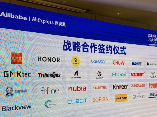 新浪科技讯1月23日下午消息,继小米宣布将阿里速卖通AliExpress作为其品牌出海首选阵地后,近日,包括荣耀、倍思、努比亚等超50家品牌集结深圳,集体签约速卖通“超级品牌出海计划”。