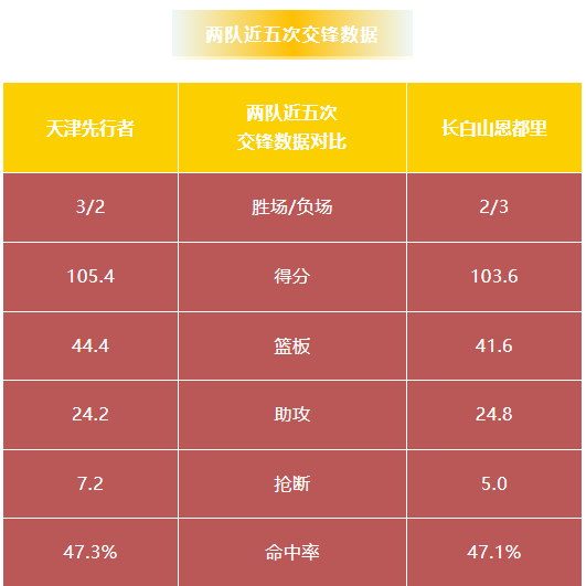上赛季两队交手2次,天津先行者2胜0负。