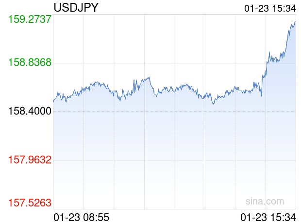 新浪外汇消息2026年01月23日,截至15时33分,外汇市场上美元兑日元汇率突破1美元兑换159.2000日元。涨幅为0.5050%