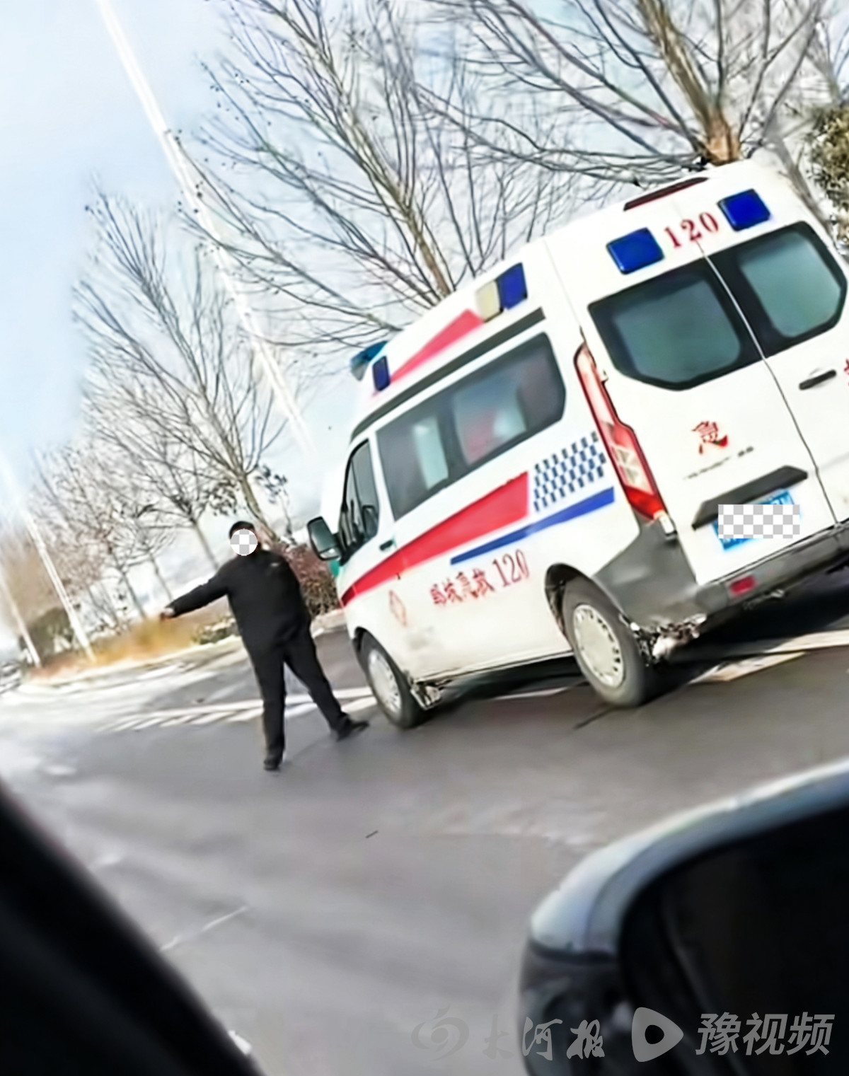 1月21日,周口刚刚经历一轮降雪,路面残留的冰雪让行车格外谨慎。上午10时许,范铃京与母亲牛娟、弟弟范灵夕驾车从郸城县家中前往周口市区办事,行驶至324省道淮阳区冯塘乡附近时,一阵急促的警报声从前方传来。随着车辆不断靠近,眼前的景象让三人瞬间绷紧了神经:一辆闪着警示灯的救护车停在路边。一名男子正和救护人员焦急地冲过往车辆挥手,车头的引擎盖高高掀起,显然车辆出现了故障。