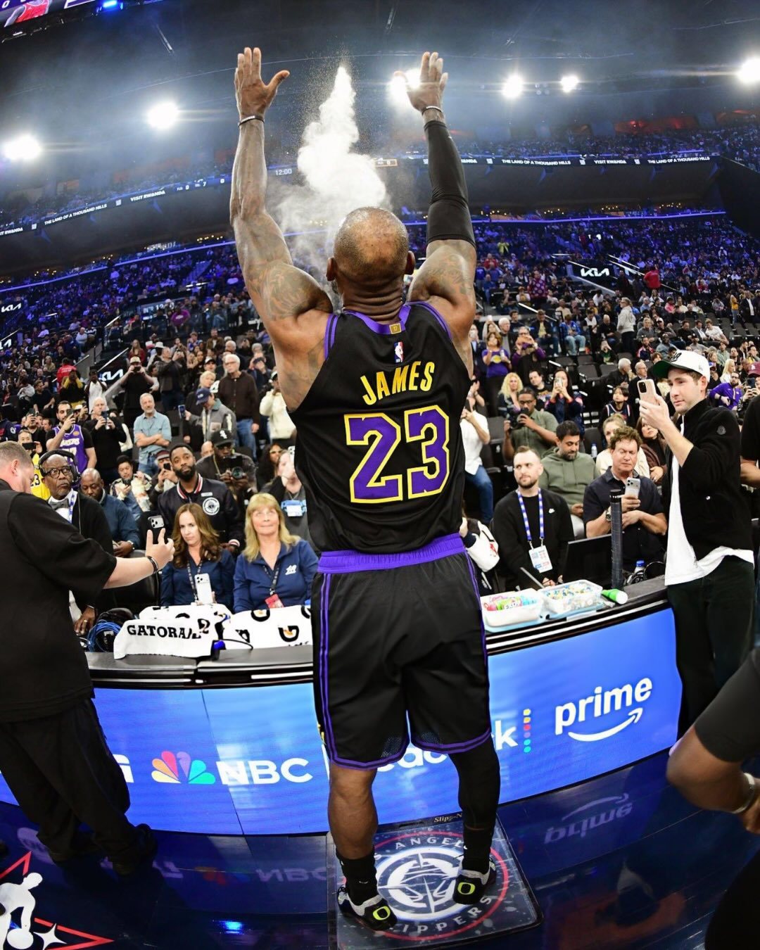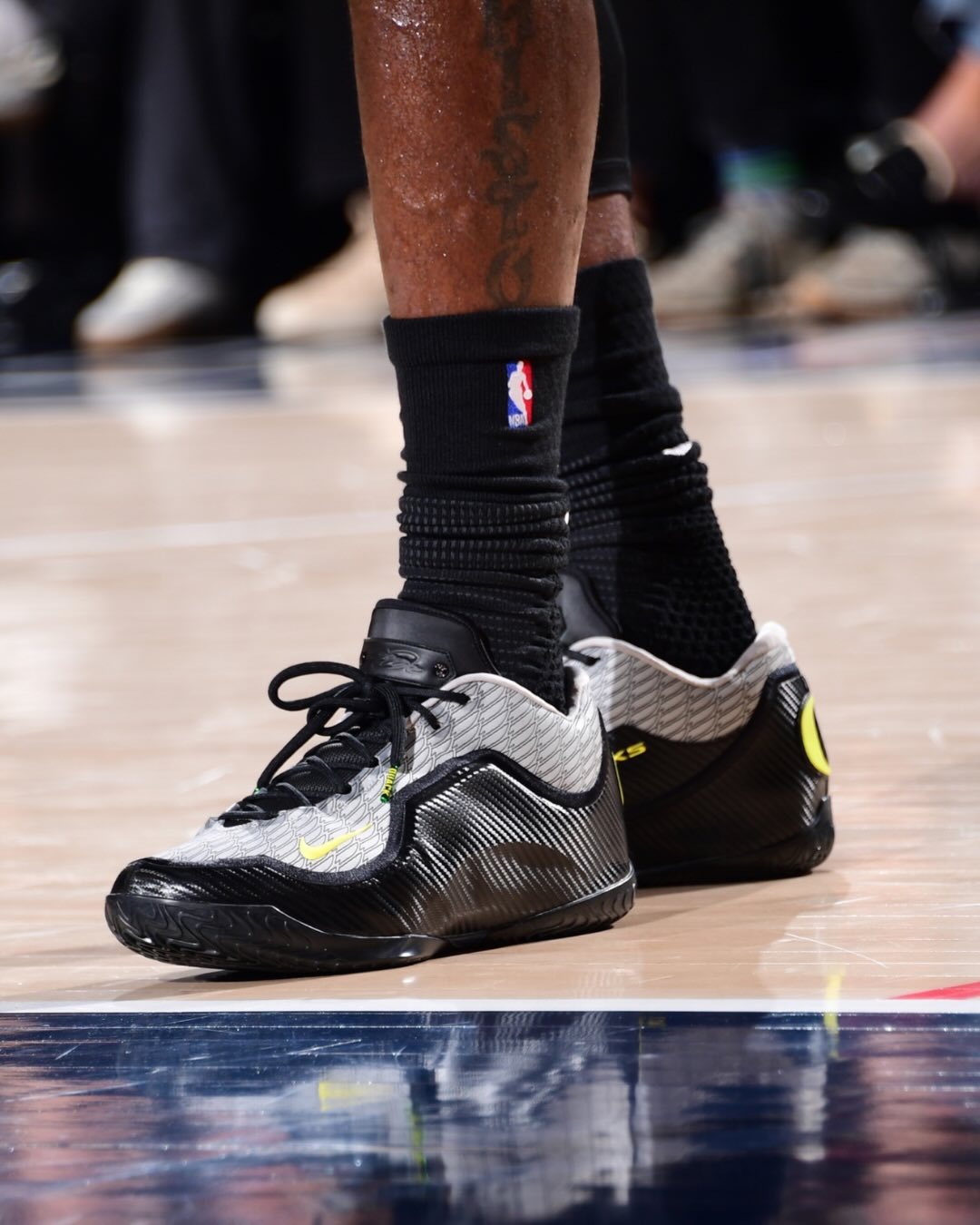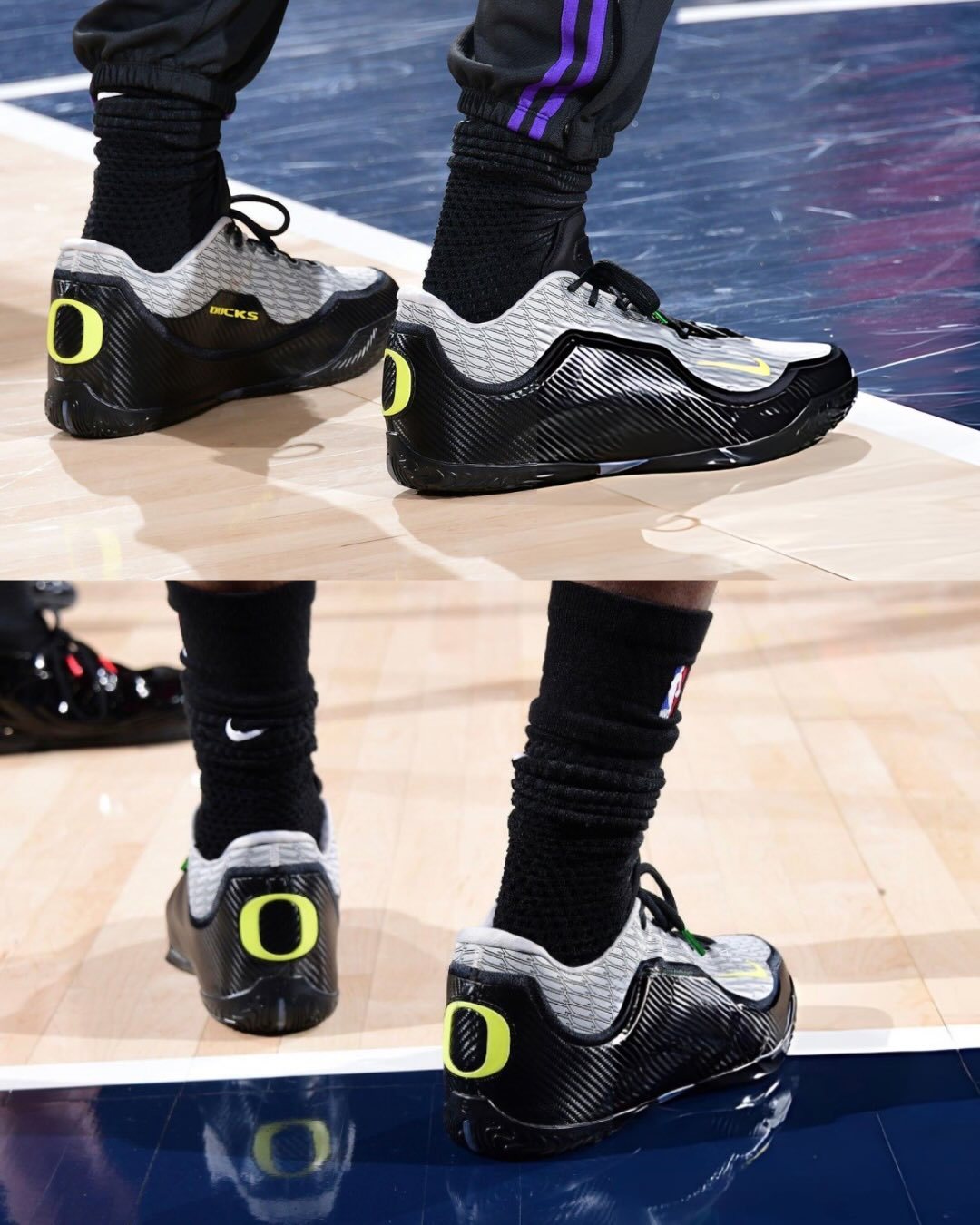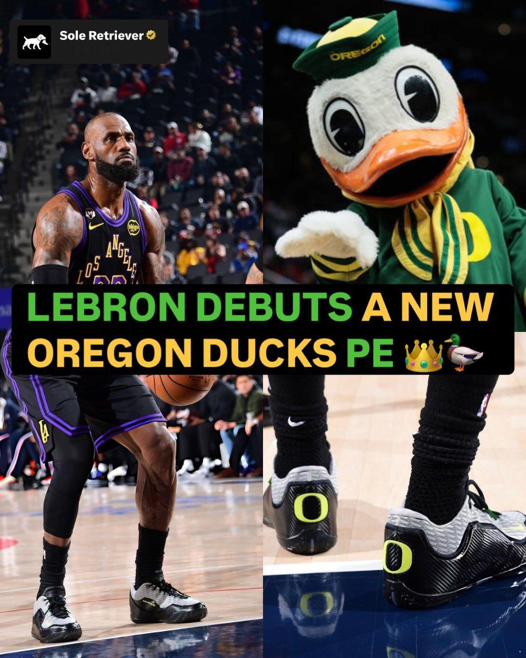 詹姆斯今天上脚俄勒冈大学篮球队的吉祥物,俄勒冈鸭子的配色👑 🦆