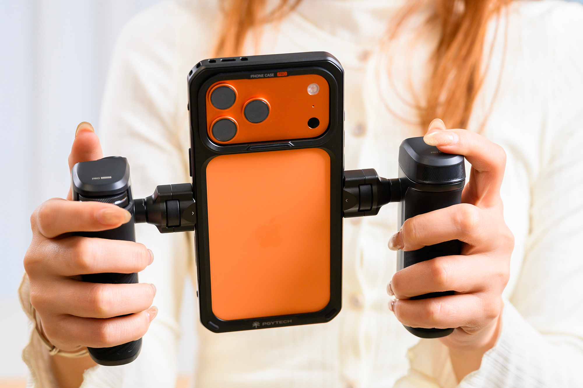 平常跑展经常用手机拍摄,但难免会觉得有点不顺手,所以最近试了下PGYTECH的手机兔笼全能套装,发现确实还不错。铝合金一体结构,稳、质感也好,拿在手里的感觉就两个字:专业。两侧握持手柄的加入,对长时间拍摄特别友好;并且是快拆设计,轻松切换横竖屏;通过各种转接接口,补光灯、麦克风、三脚架都能轻松适配,直接让iPhone化身一套轻量级的专业拍摄设备。