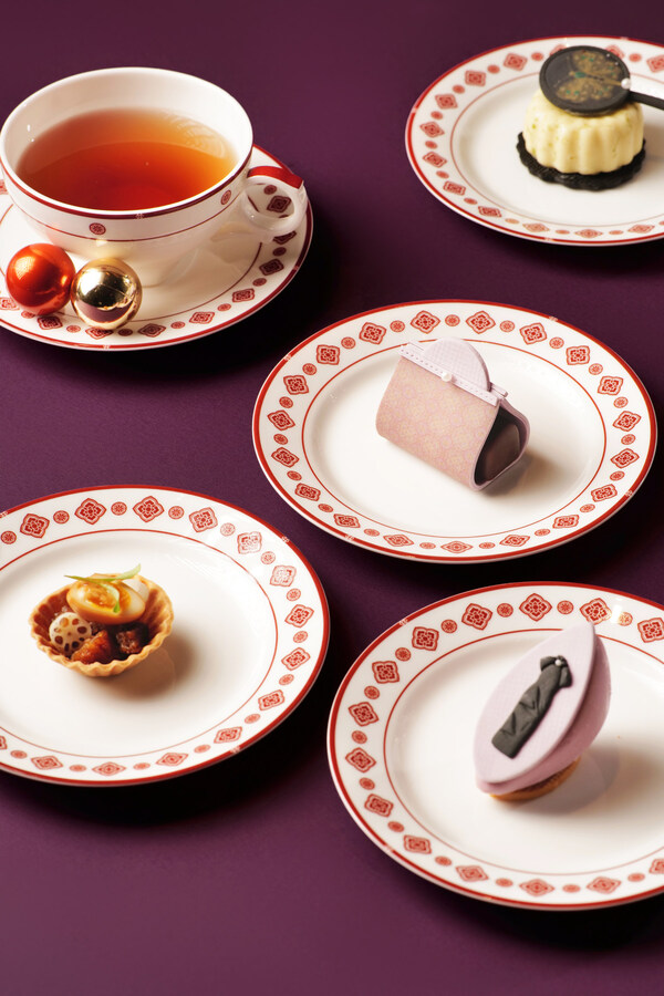 苏州丽思卡尔顿酒店携手上久楷共同打造的「锦绣姑苏」联名下午茶,包含4款非遗主题定制甜品、4款咸点、2款经典司康及配套果酱,另为宾客提供2位咖啡或西式茶的饮品选择,每套专属附赠宋锦小狮子限定盲袋一份。在主题甜品的创作上,酒店饼房厨师长Sandy带领厨师团队深度解构宋锦的纹样美学与文化内核,将千年织造工艺的经纬韵律、经典纹样凝于舌尖,实现西式技艺与中式雅意的完美融合:奶油话梅芝士搭配抹茶甘那许,复刻苏州"蜜渍雕梅"的古韵,形似一柄可食用的"诗意画扇";法芙娜巧克力与手熬车厘子酱融入莎布雷酥饼,以宋锦菱纹定胜纹样塑造成精巧手包,碰撞出法式精致与江南华美的双重质感;立体旗袍造型的外交官奶油草莓罗勒,则将异域草本与东方风土相融,在舌尖铺展流动的江南仕女图。每款甜点皆以宋锦经纬为骨,在西式技艺中暗藏中式对称雅意,实现味觉与视觉的双重享受。