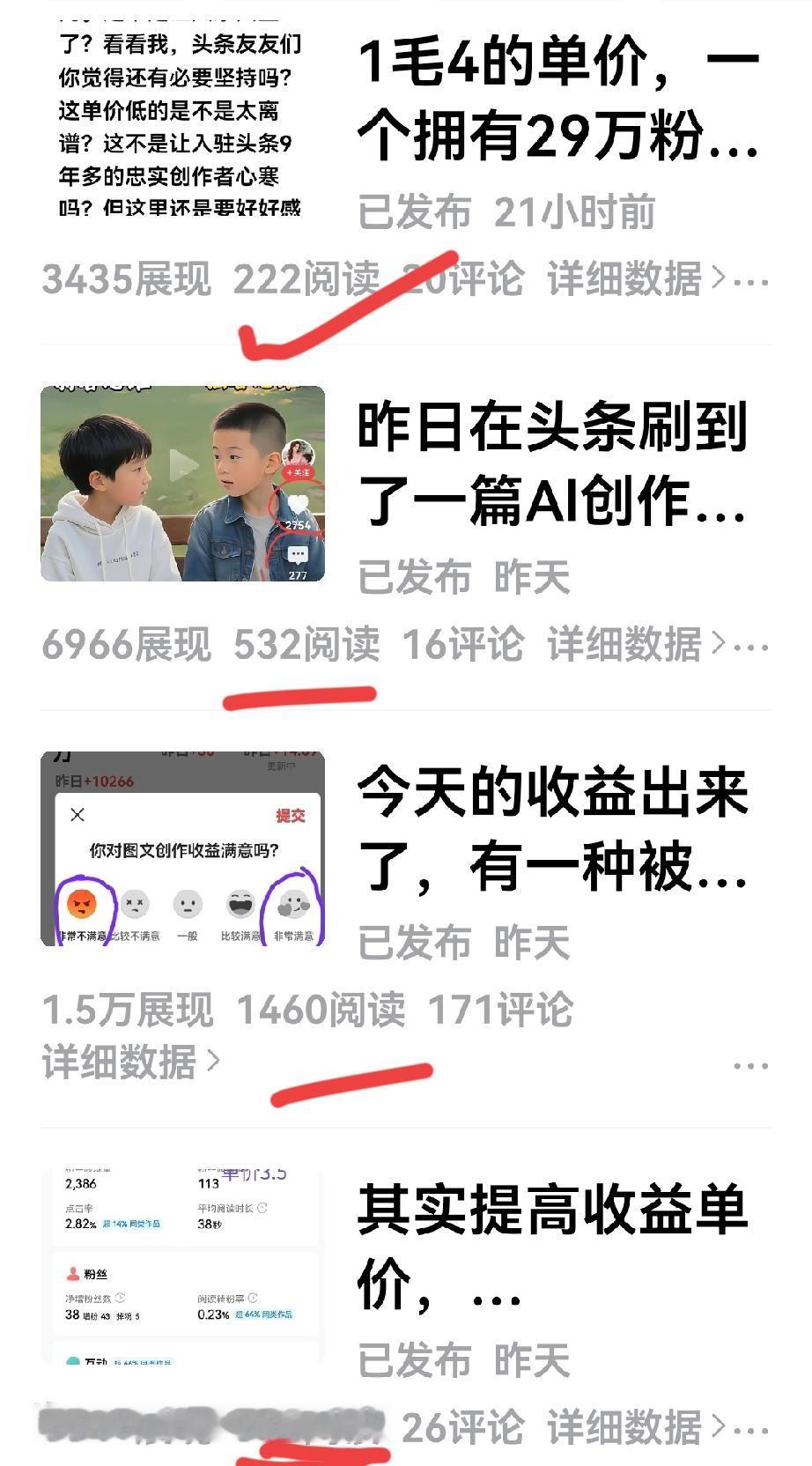 每天的阅读量数据总比预想的要多一倍以上,多多少少有些惊讶!昨天写了4篇微头条,总阅读量超不过3千,但今天的数据显示,昨天的总阅读量是7478,这时就有点迷糊了,这多余的4千阅读量是哪里来的呢? 其实不仅仅是昨日的情况是这样,这一个多月以来,几乎都是这样的情况! 都说作品有尾流,关于尾流的情况,我多多少少是有些了解的,那就是有作品爆了,第二天,其至是第三天也还有推流的情况,这种推流基本从消息栏中的点赞与评论及爆款作品的阅读量上明显看得出来。 但是近段时间以来,我基本没有出什么大爆款,消息栏中虽有几阵99+的情况出现,点开看,基本都是当天作品、及我回访与互动中友友们给的回复或点赞,根本就看不到又是哪篇往日作品就突然爆了的情况出现,有也是依稀几个旧作品的点赞与评论。 不找原因了,每天有莫名其妙的大几千阅读量涌来,这是好事,但愿这件事,天天有,越多越好,阅读量越多总会多多少少会带来一些收益! 不知友友们是不是这个情况?愿友友们与我一样也有这种好事出现,最后祝友友们天天开心!心想事成!我们一起努力,一起加油,一起创造奇迹!