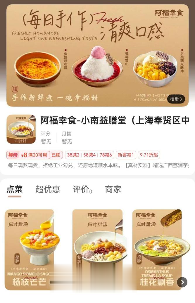 现在,这家网红糖水铺也上线了外卖平台,评分和销量暂未显示。