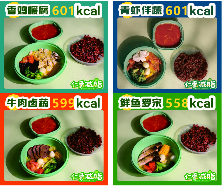 同时,遵循“营养均衡、低脂高蛋白”的核心原则,每份控制热量在500~620千卡,满足一个成年人的一餐所需的热量和营养摄入,热量低又饱。