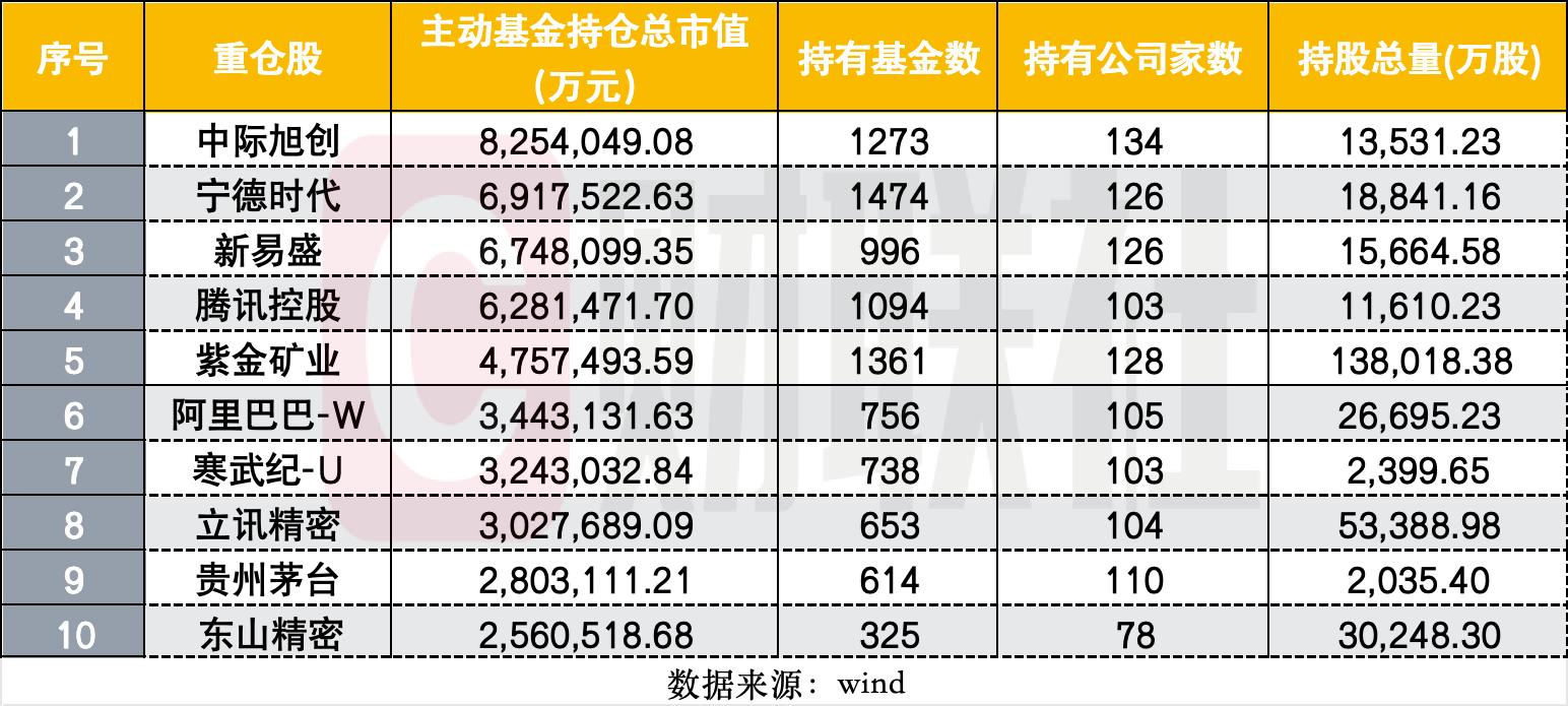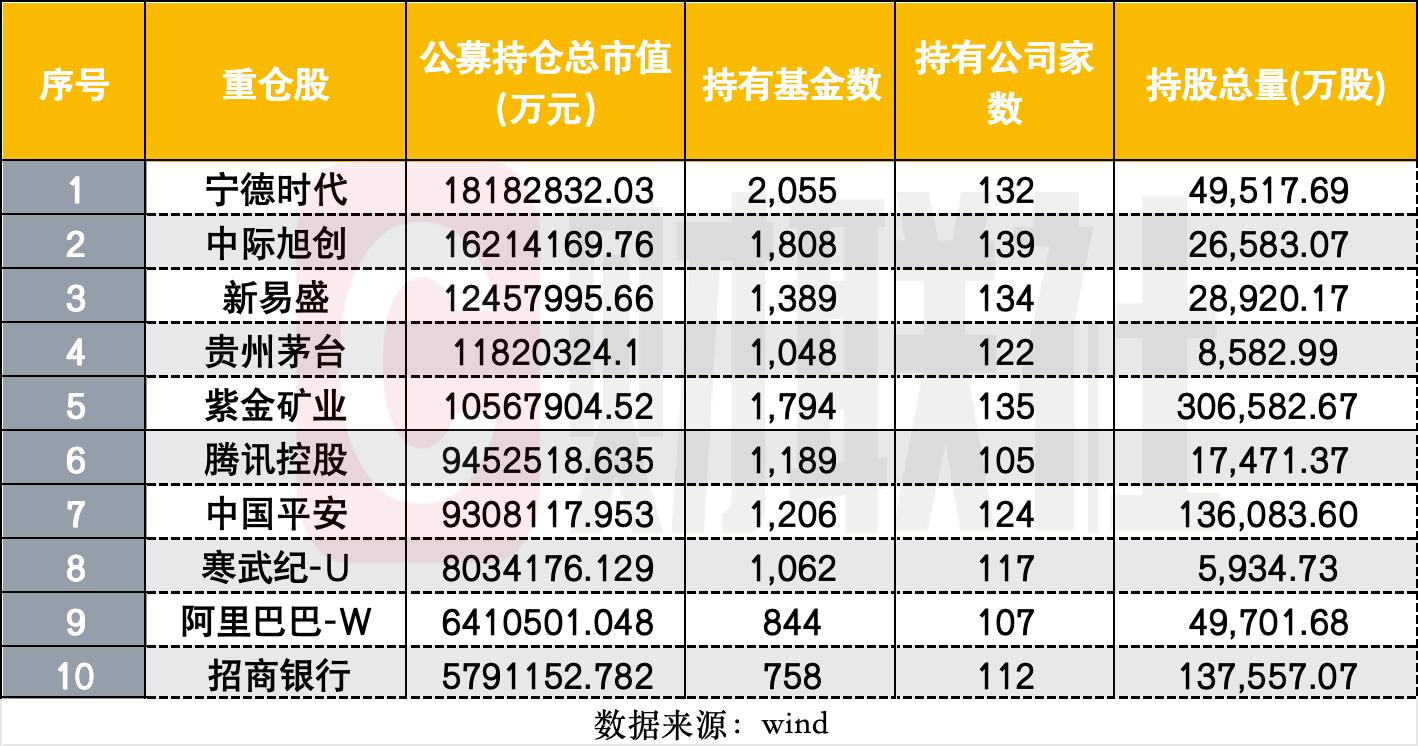 宁德稳居公募重仓榜首,中际旭创快速逼近