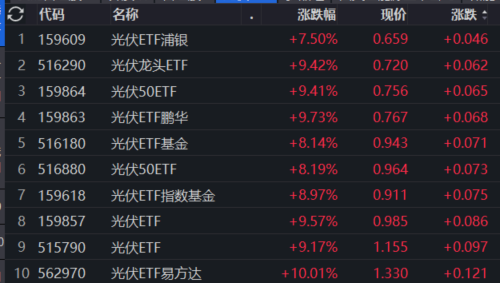 或受此言论带动,当天A股的光伏板块被“引爆”,截至当天收盘,近30余只个股涨停,晶科能源、东方日升、乾照光电、迈为股份、奥特维等股票同步收获20%的涨停,欧普泰封死30%涨停,光伏ETF集体飙升。
