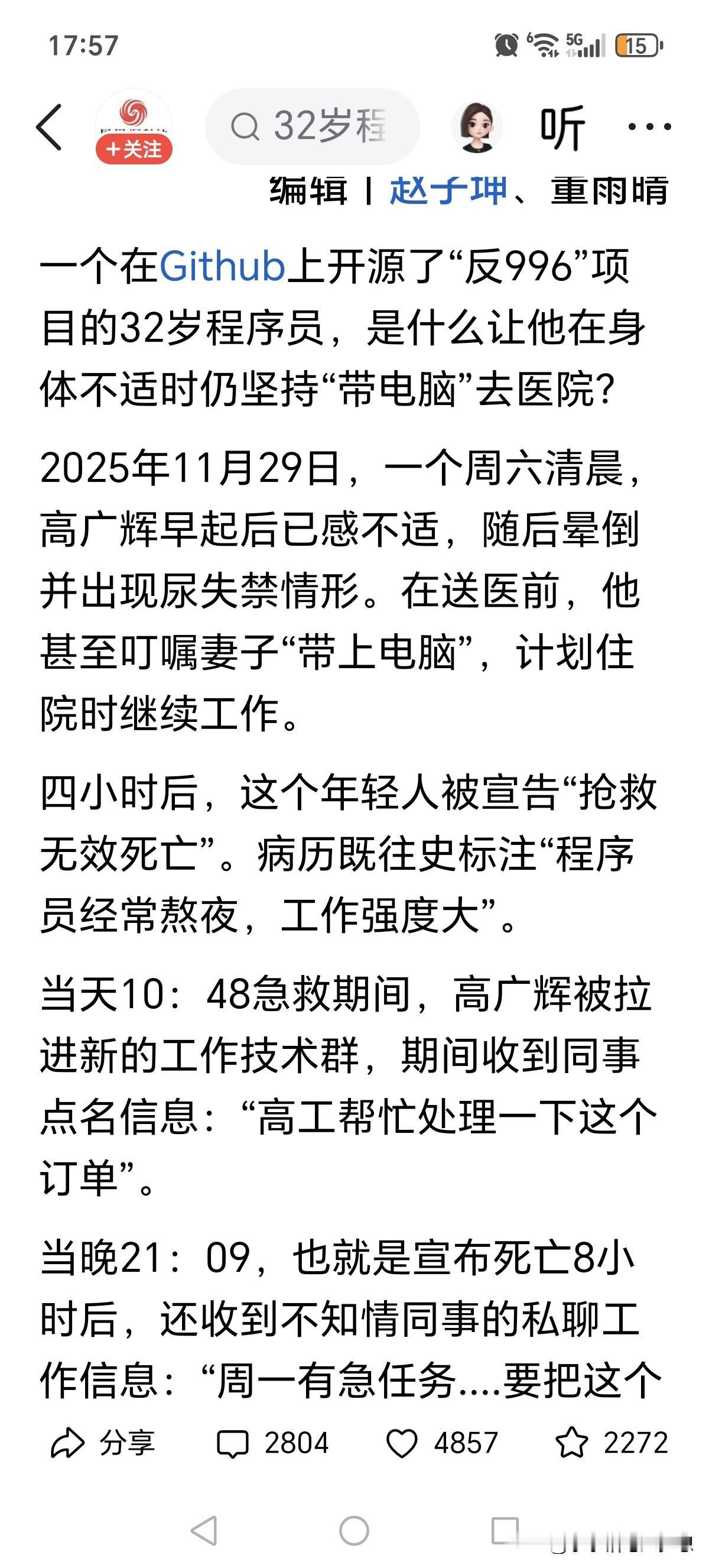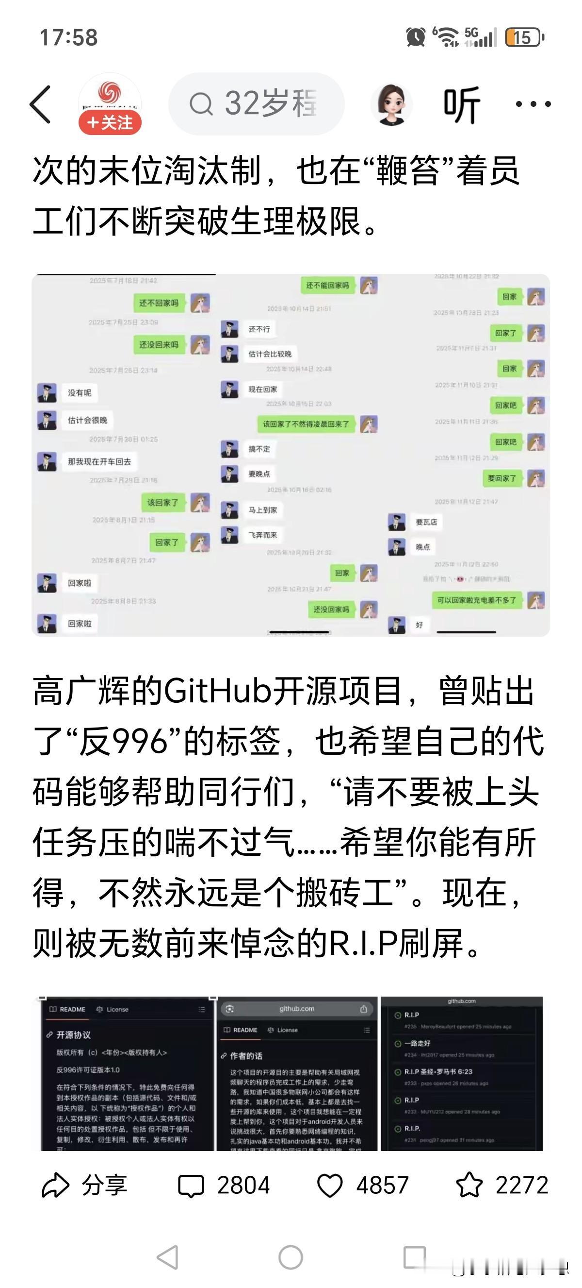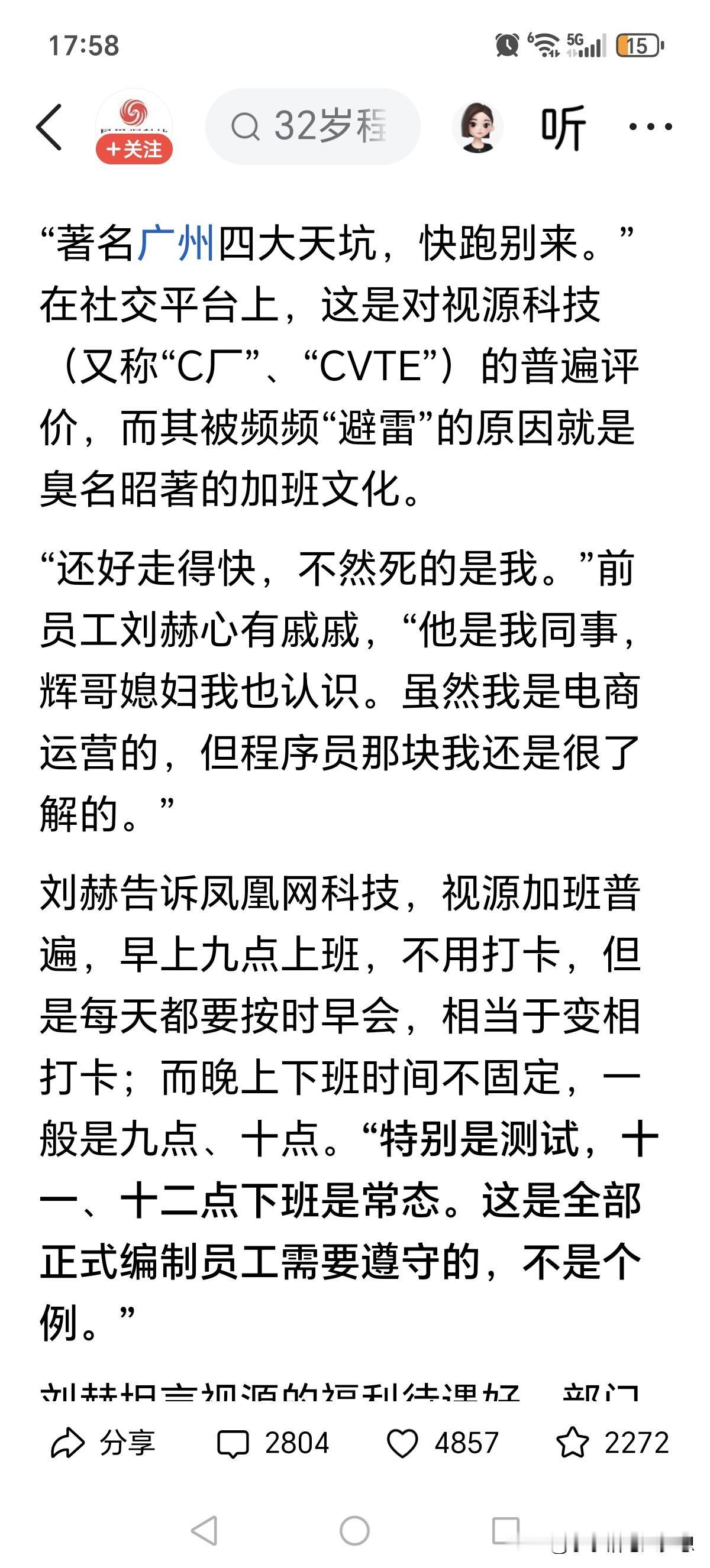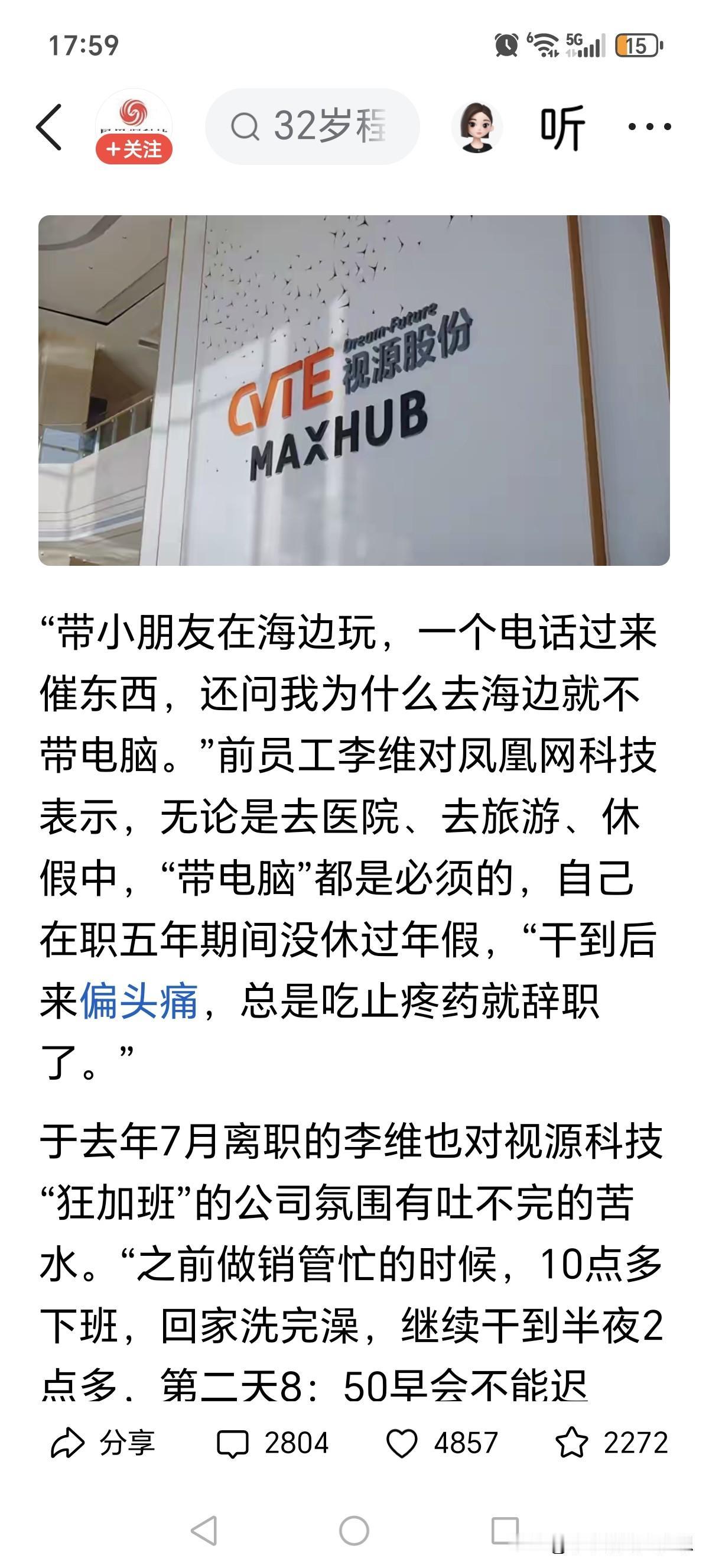 视源股份32岁猝死的高广辉的妻子找到了官方的凤凰科技媒体爆料,这家公司太会算计了,直接警告她如果对她的行为对公司造成了负面的影响,还要她赔付违约金50万。 事实上,公司只给了39万做人道主义赔偿,高广辉的妻子说,其实这个就是老公死后公司给她老公办理离职n+1的赔偿,说的好听一点,是人道主义,但实际上就是封口费。 其实这个事情最离谱的是公司不配合认定工伤,而她的公公还想提前分财产,她告知媒体这39万到她手的话,可能只有4到6万块钱。 高广辉的妻子也曾经提过她的老公加班是没有加班工资的,但是加班是常规,经常一大早就去上班了,到了晚上9点多钟10点钟才回家,因为他的底薪面只有3000元,但工资每个月能得到差不多30000块钱,实际上,得到这个钱一点都不容易,因为这月薪直接挂钩绩效和提成。公司每个月都会举行一次末尾淘汰赛,所以这是等同于从后面撵着你跑,你跑不了,那你得下来,而她的老公责任心强而且因为两人还在还房贷,那就得玩命的向前冲。 本来高广辉的妻子想通过工伤来索取赔偿,正常的情况下如果工伤认定成功的话,赔偿都会上百万,所以她想要通过打官司的方式争取多一点的赔偿,但是律师直接告知,这事情没那么简单,如果要认定工伤的话,要公司配合才行,而这个公司,它上下班是不用打卡的,实际上这所谓的弹性工作制,就是无偿加班的遮羞布。 而一般的公司,它不会很主动的配合工伤认定的,主要是如果配合工伤,那无疑是曝光了公司“强制”性加班违规的问题,也怕一旦承认了,所有员工都会因为这个事情集体维权,也怕影响公司的股票。 而他的妻子在衡量利弊的过程中,应该也考虑到,他这种认定工伤确实比较难,毕竟他当时确实没在没在工作岗位上,而工伤认定法规的10条(7个认定,3个视同)要提供证据,也要公司配合,但问题是她老公死了之后,他的东西公司基本都没给保存,而这个事情又属于民事纠纷,如果打起官司来,还要衡量时间成本,她咨询过相关律师,知道律师都不想接,她才选择签下了协议。 这个事情只能是一声唏嘘啊,32岁的生命代价,足以让我们警醒:职场健康和权益保障刻不容缓!在工作和健康之间要做出选择,你要永远记着“你是家里一片天,在单位仅仅是一块砖”!