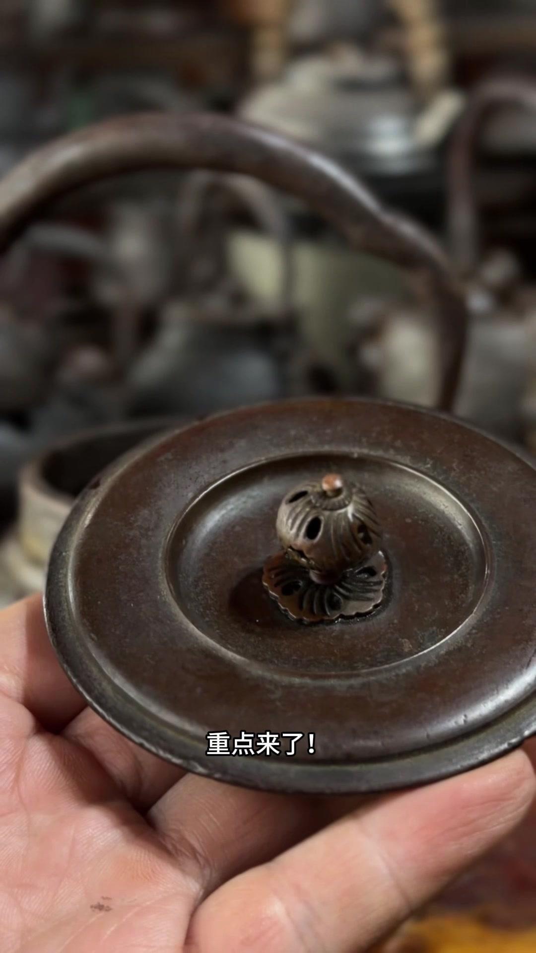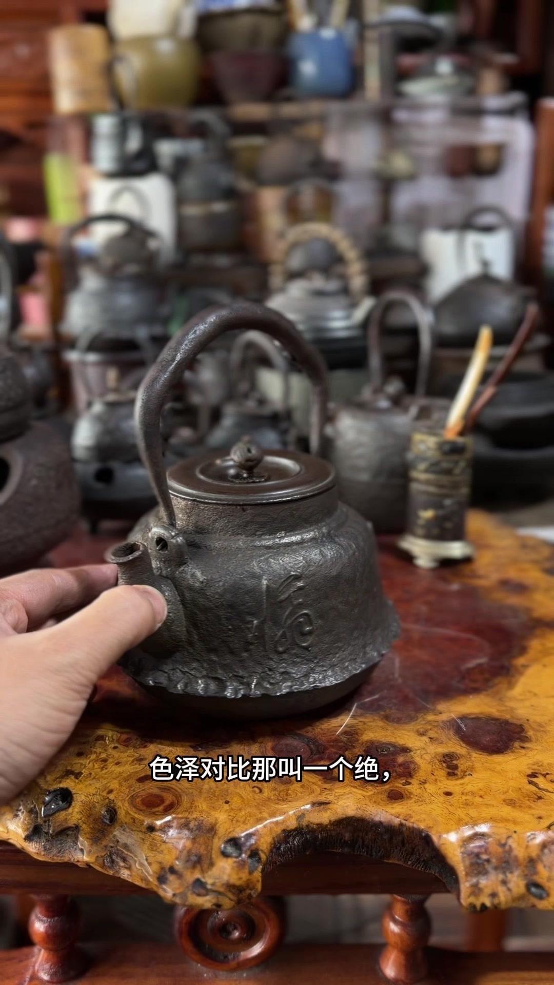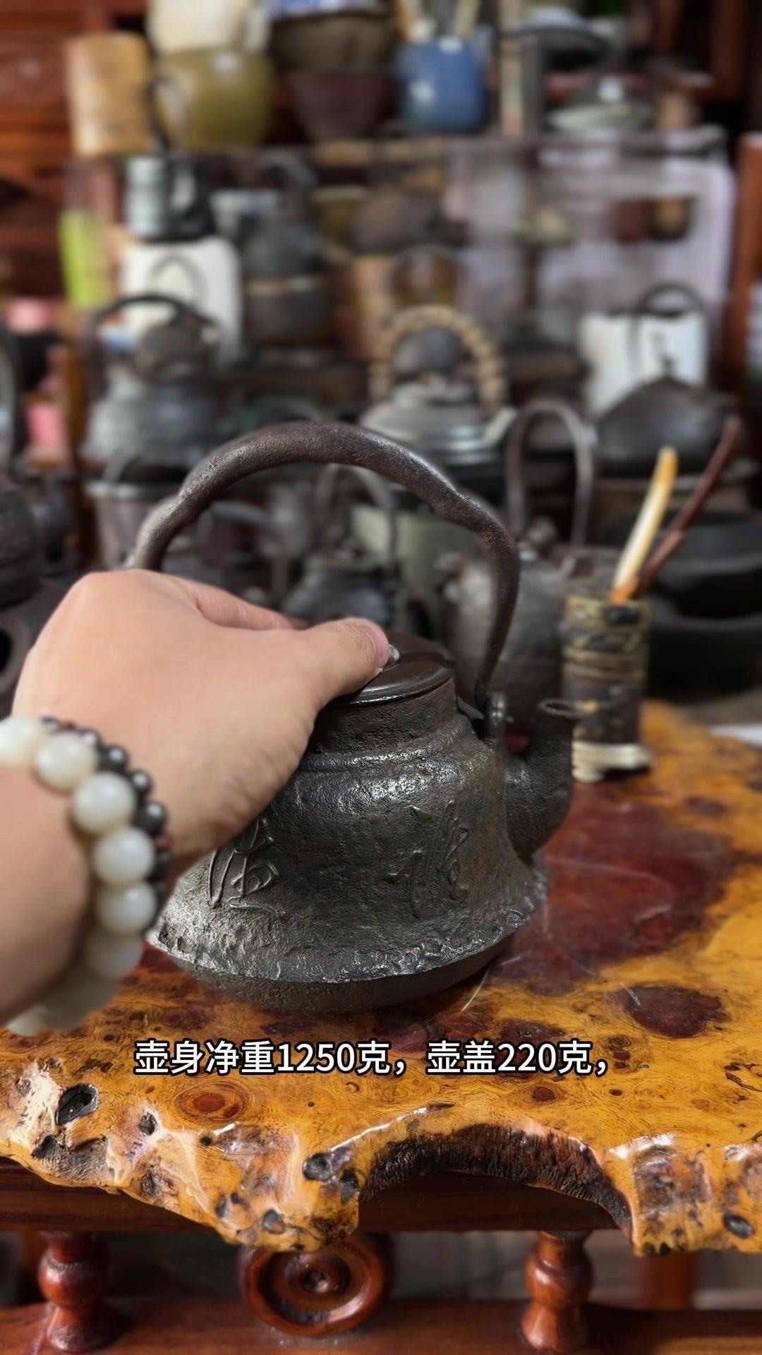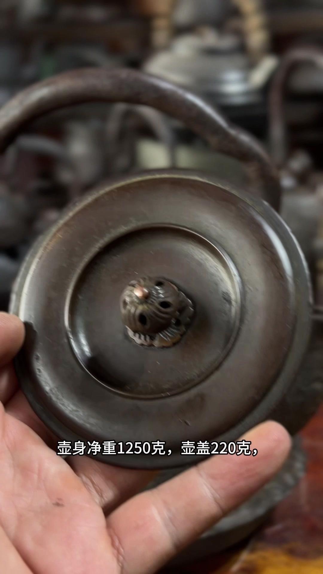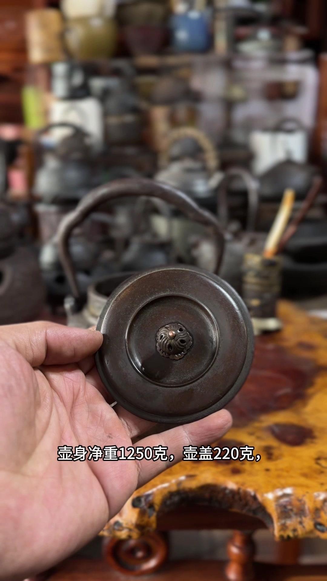 江湖末期龙文堂早期安首作铁壶,这品相真的绝了!宽底高腰的经典器型往茶台上一摆,优雅大气的气场直接拉满。 岩肌青皮砂铁的质地摸上去糙中带润,这可是老砂铁独有的质感,岁月的包浆都在上面呢。斑紫铜盖配着砂铁,红与棕的色泽对比,光是看着就让人赏心悦目。 硬数据也得看清楚:满水容量900毫升,实际煮水650毫升,三五好友围坐煮茶刚好。壶身净重1250克,壶盖220克,沉甸甸的手感懂行的人一摸就知道铁料有多好。 这把壶我一直自己在用,泡茶口感醇甜不说,老砂铁煮水能软化水质还能激发茶香,到手直接用不用费心养。不管是日常实用还是收藏把玩,都是顶尖好货。 龙文堂早期安的作品存世量少,工艺又精湛,加上江户末期的年份加持,收藏价值直接拉满。错过这把,想找品相完美又实用的老壶可就难了。