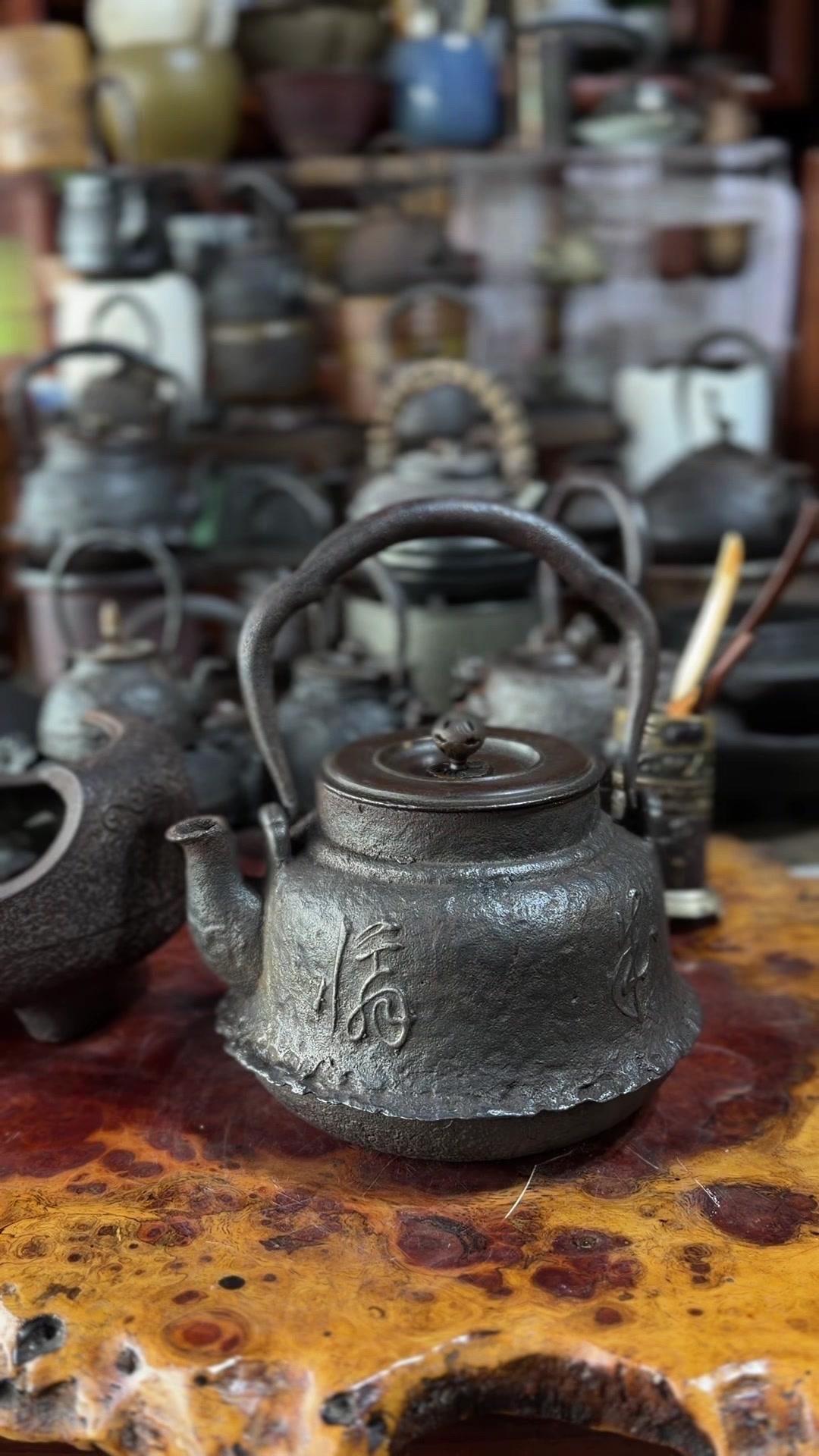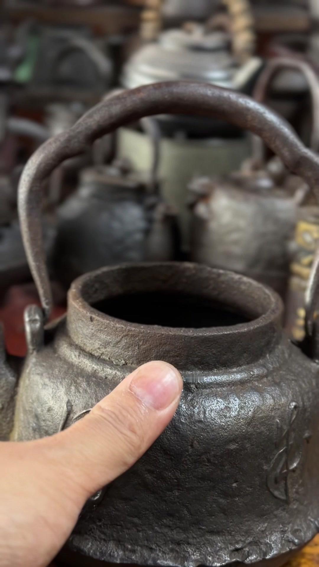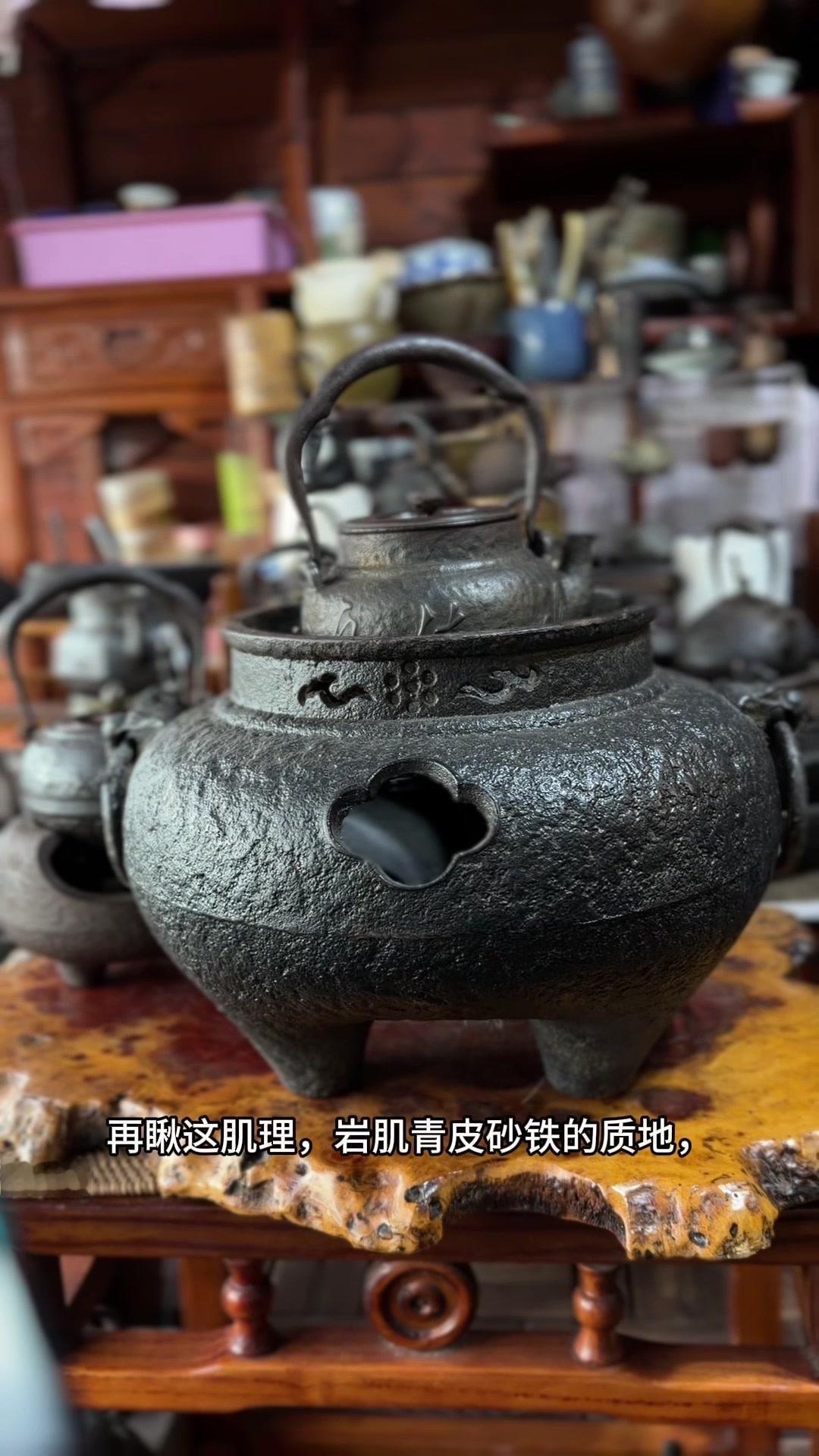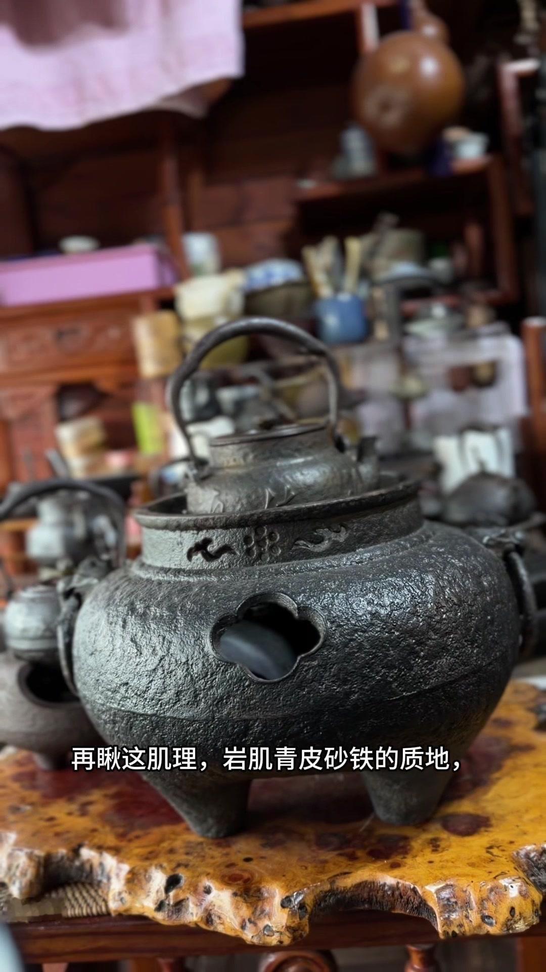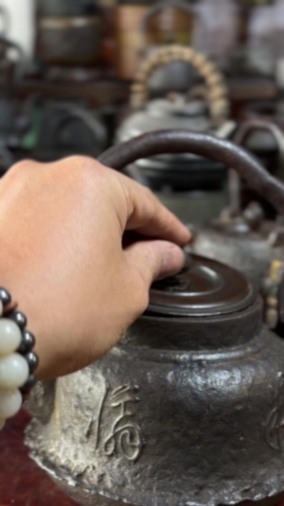 江湖末期龙文堂早期安首作铁壶,这品相真的绝了!宽底高腰的经典器型往茶台上一摆,优雅大气的气场直接拉满。 岩肌青皮砂铁的质地摸上去糙中带润,这可是老砂铁独有的质感,岁月的包浆都在上面呢。斑紫铜盖配着砂铁,红与棕的色泽对比,光是看着就让人赏心悦目。 硬数据也得看清楚:满水容量900毫升,实际煮水650毫升,三五好友围坐煮茶刚好。壶身净重1250克,壶盖220克,沉甸甸的手感懂行的人一摸就知道铁料有多好。 这把壶我一直自己在用,泡茶口感醇甜不说,老砂铁煮水能软化水质还能激发茶香,到手直接用不用费心养。不管是日常实用还是收藏把玩,都是顶尖好货。 龙文堂早期安的作品存世量少,工艺又精湛,加上江户末期的年份加持,收藏价值直接拉满。错过这把,想找品相完美又实用的老壶可就难了。