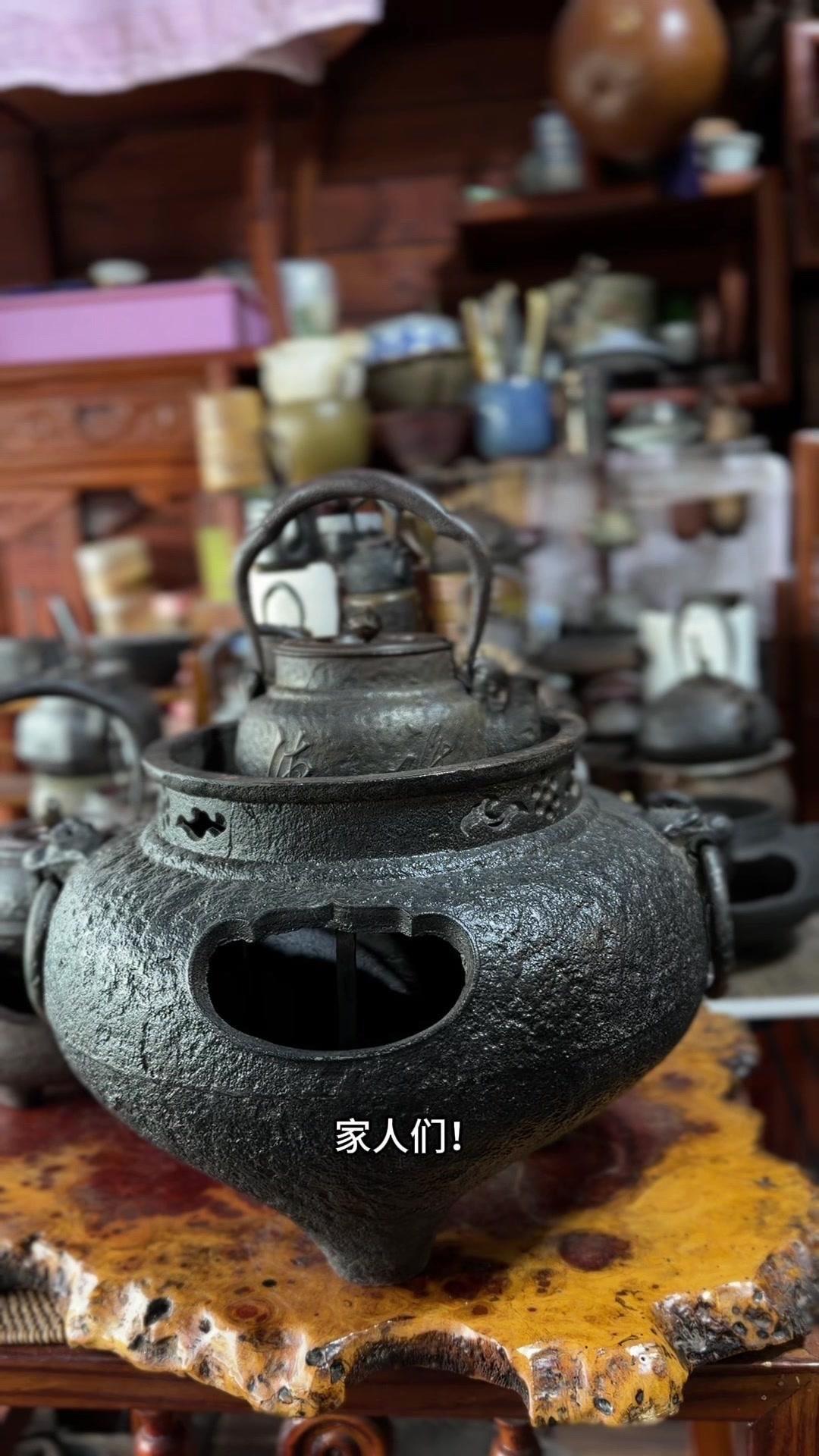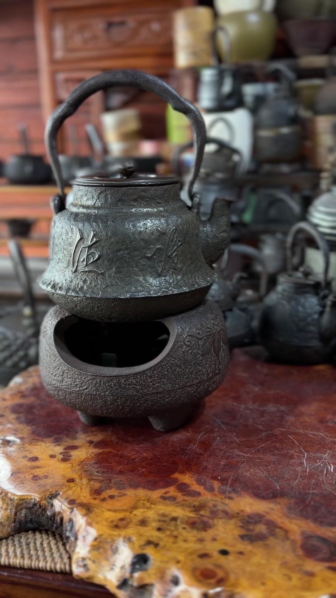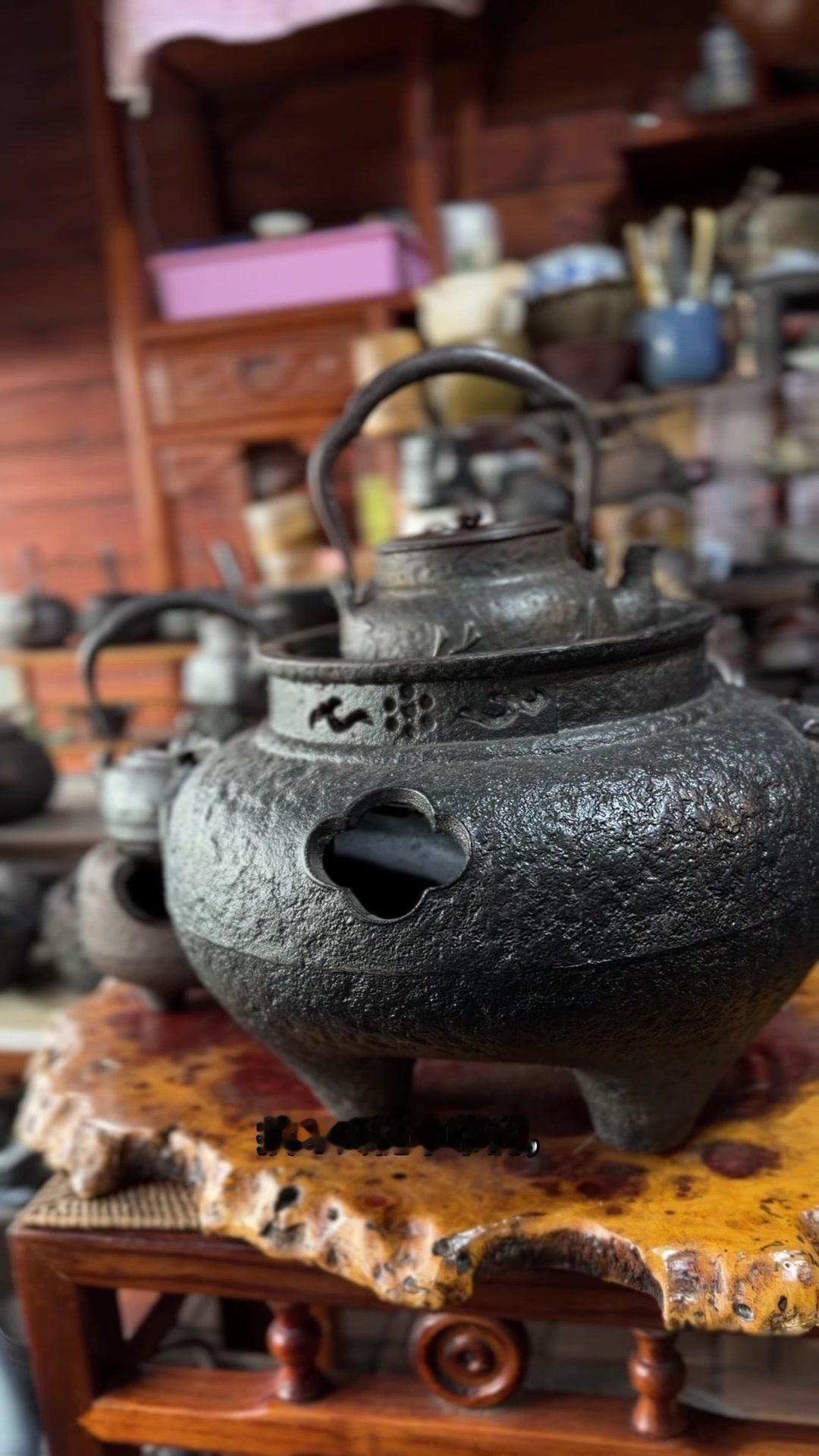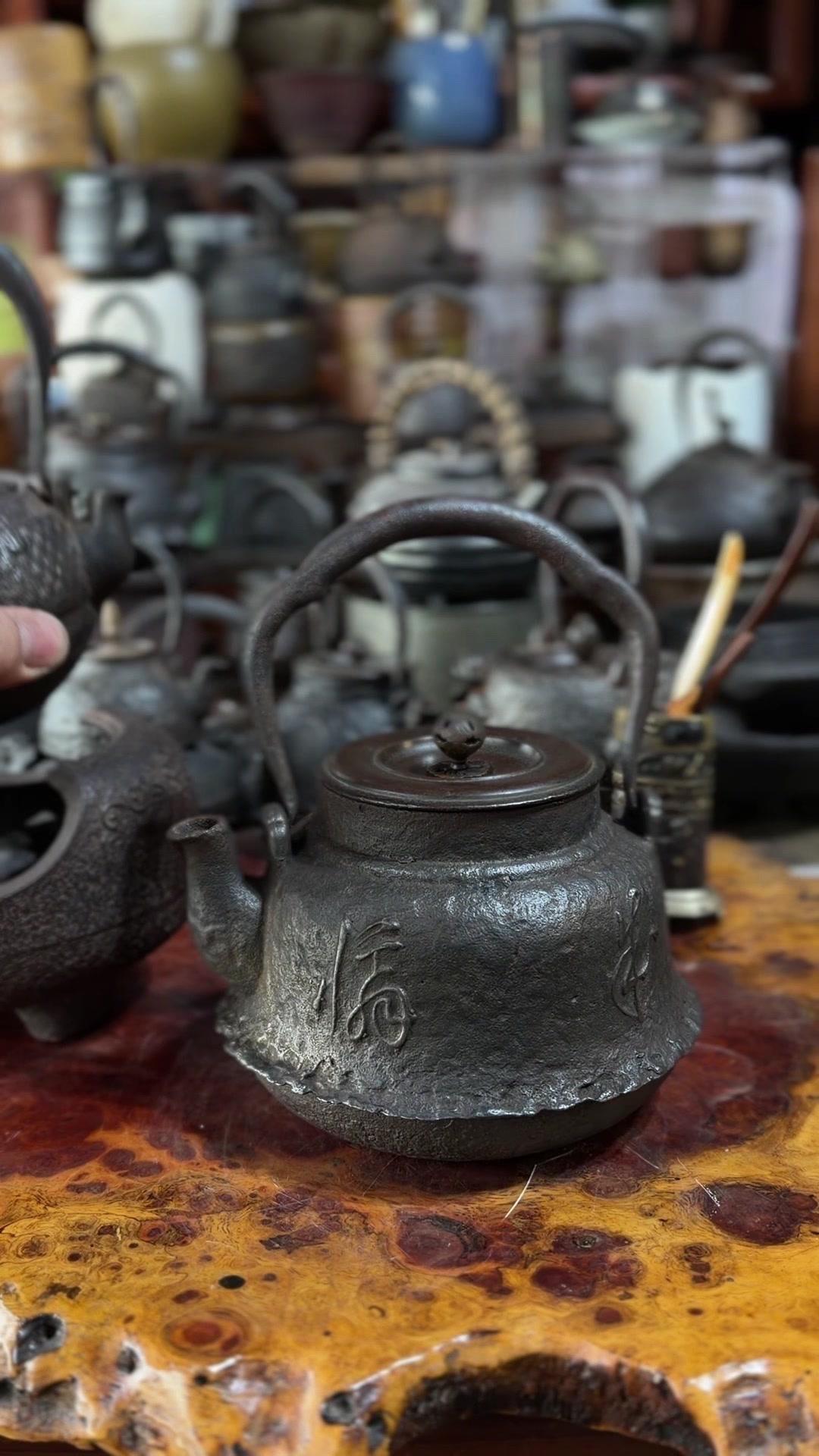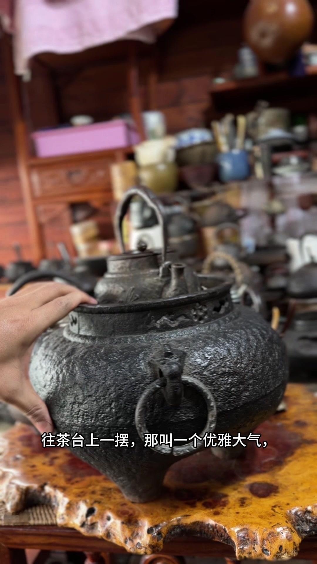 江湖末期龙文堂早期安首作铁壶,这品相真的绝了!宽底高腰的经典器型往茶台上一摆,优雅大气的气场直接拉满。 岩肌青皮砂铁的质地摸上去糙中带润,这可是老砂铁独有的质感,岁月的包浆都在上面呢。斑紫铜盖配着砂铁,红与棕的色泽对比,光是看着就让人赏心悦目。 硬数据也得看清楚:满水容量900毫升,实际煮水650毫升,三五好友围坐煮茶刚好。壶身净重1250克,壶盖220克,沉甸甸的手感懂行的人一摸就知道铁料有多好。 这把壶我一直自己在用,泡茶口感醇甜不说,老砂铁煮水能软化水质还能激发茶香,到手直接用不用费心养。不管是日常实用还是收藏把玩,都是顶尖好货。 龙文堂早期安的作品存世量少,工艺又精湛,加上江户末期的年份加持,收藏价值直接拉满。错过这把,想找品相完美又实用的老壶可就难了。