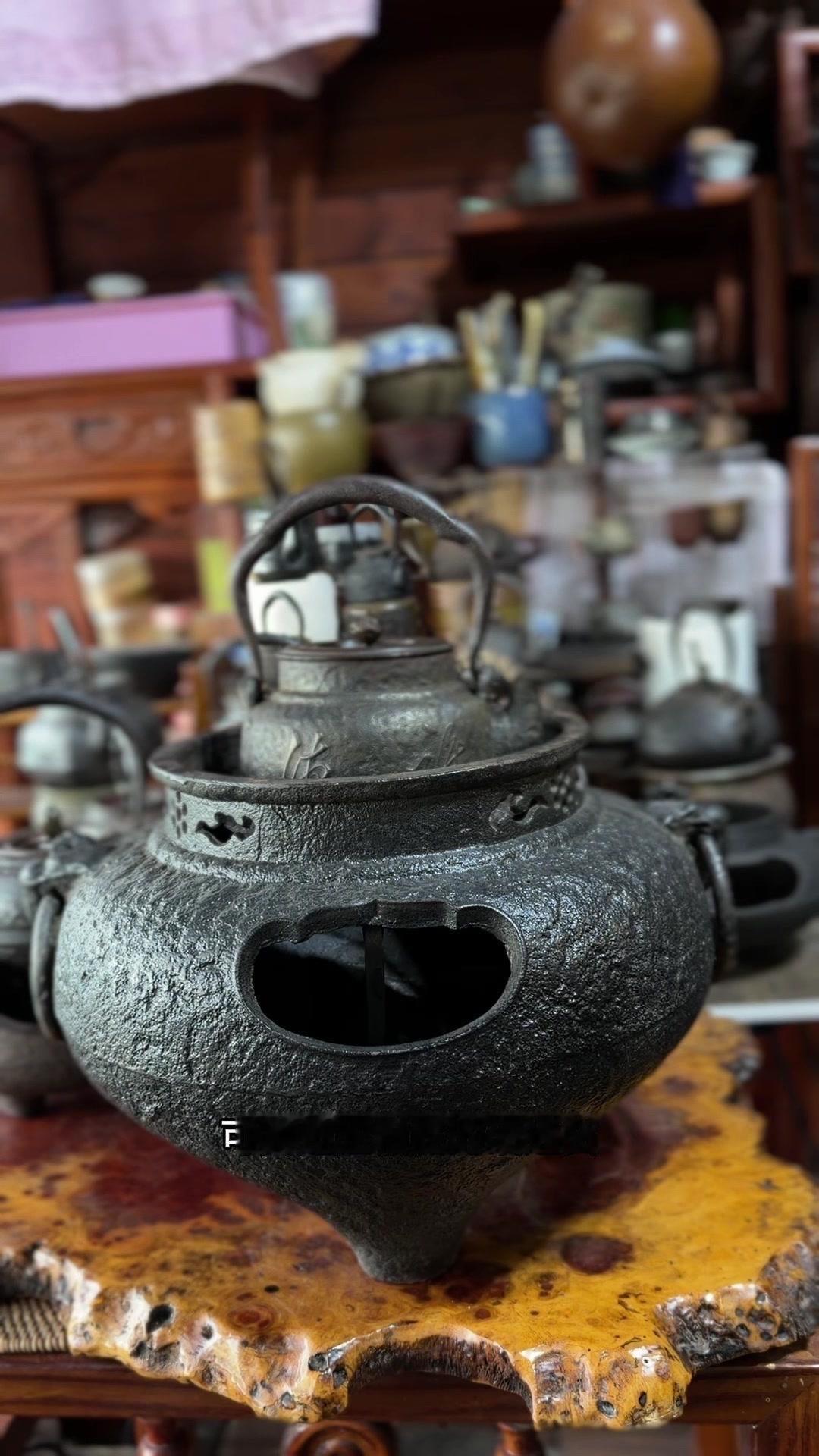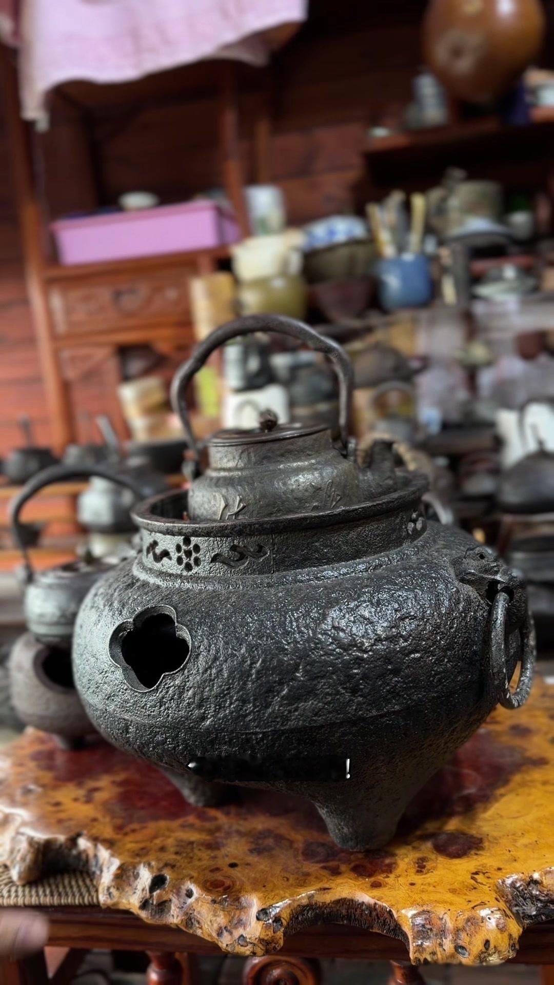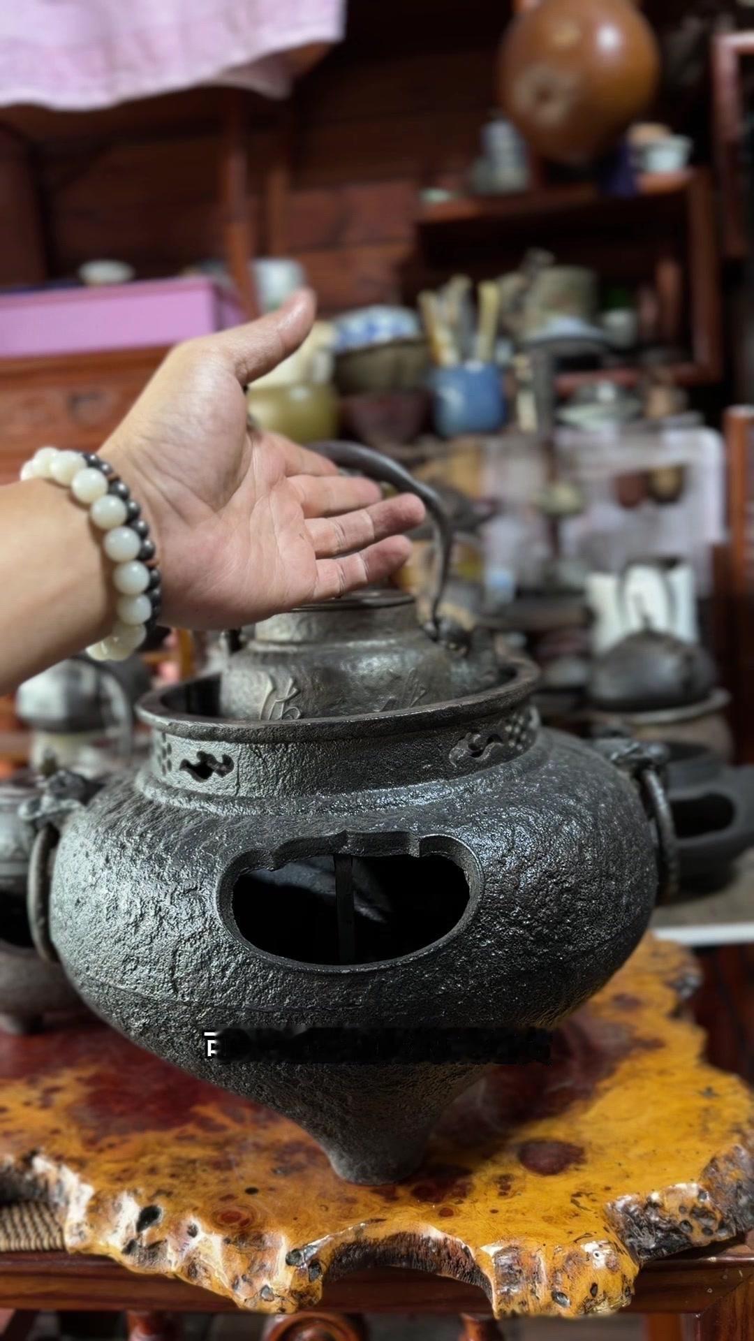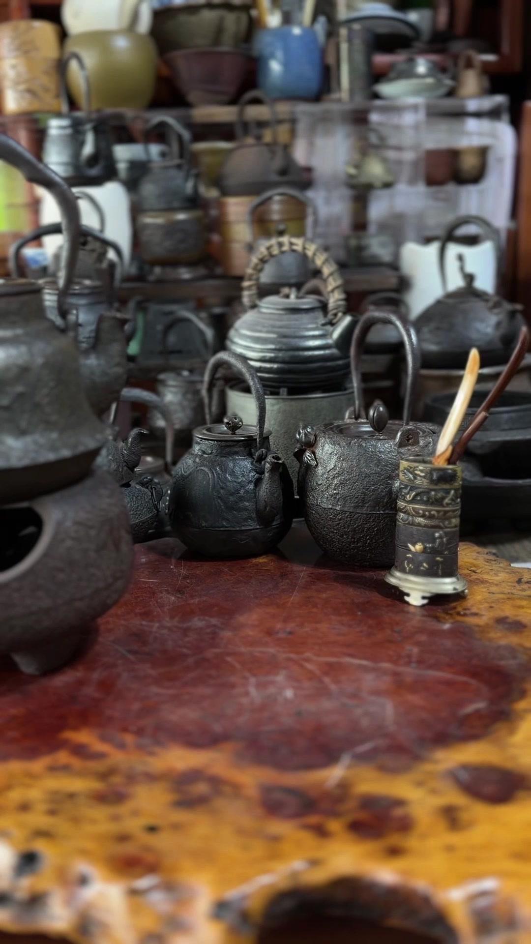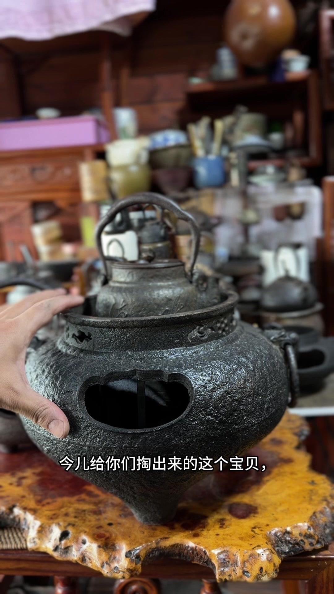 江湖末期龙文堂早期安首作铁壶,这品相真的绝了!宽底高腰的经典器型往茶台上一摆,优雅大气的气场直接拉满。 岩肌青皮砂铁的质地摸上去糙中带润,这可是老砂铁独有的质感,岁月的包浆都在上面呢。斑紫铜盖配着砂铁,红与棕的色泽对比,光是看着就让人赏心悦目。 硬数据也得看清楚:满水容量900毫升,实际煮水650毫升,三五好友围坐煮茶刚好。壶身净重1250克,壶盖220克,沉甸甸的手感懂行的人一摸就知道铁料有多好。 这把壶我一直自己在用,泡茶口感醇甜不说,老砂铁煮水能软化水质还能激发茶香,到手直接用不用费心养。不管是日常实用还是收藏把玩,都是顶尖好货。 龙文堂早期安的作品存世量少,工艺又精湛,加上江户末期的年份加持,收藏价值直接拉满。错过这把,想找品相完美又实用的老壶可就难了。