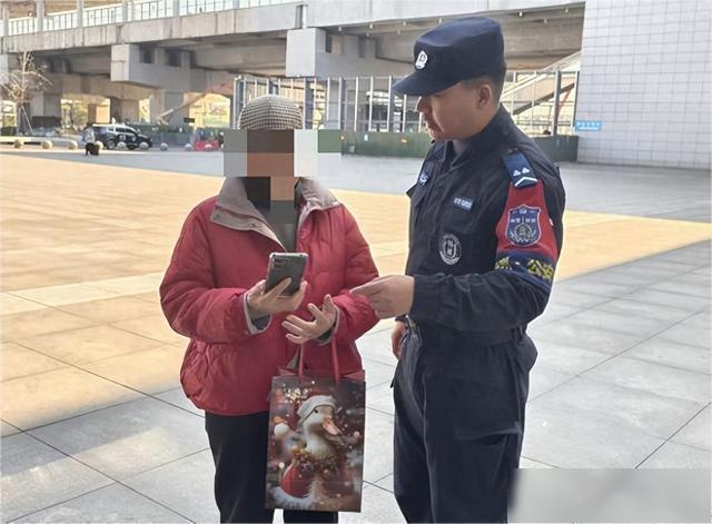 当时,执勤民辅警发现该女士神情焦灼、手足无措,便立即上前主动询问情况。经了解,女士需紧急赶往武汉,亲人已提前为她买好车票,可临近进站才发现没带身份证,无法顺利检票乘车,眼看发车时间临近,急得满头大汗。