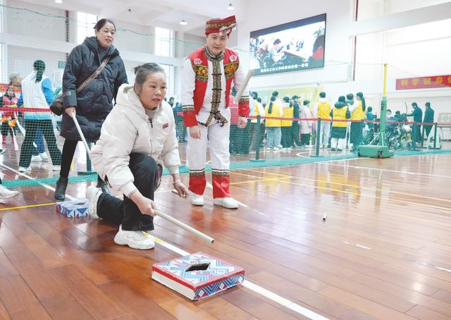 市民在体验壮族迪尺非遗运动项目。