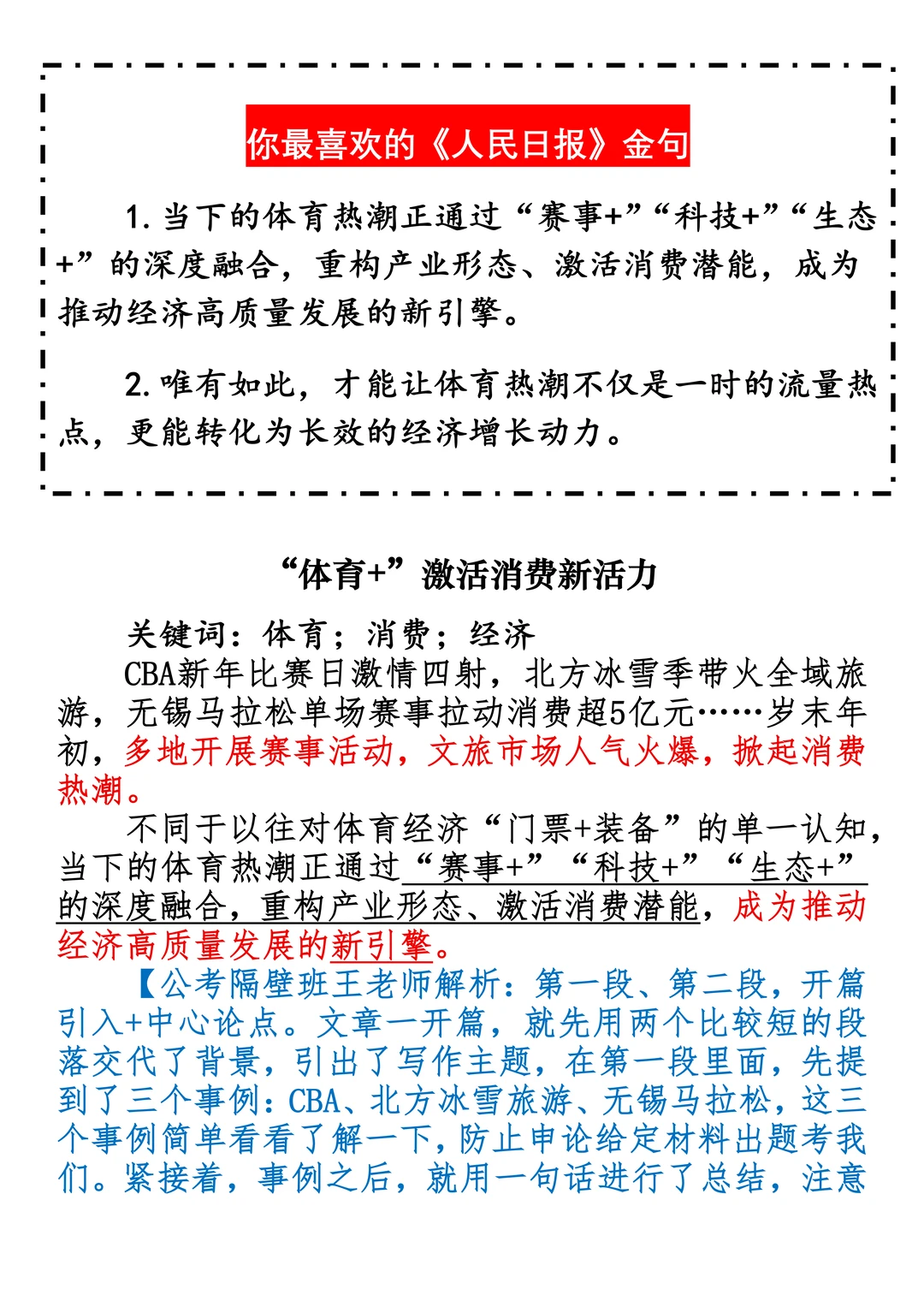 申论范文:“体育+”激活消费新活力