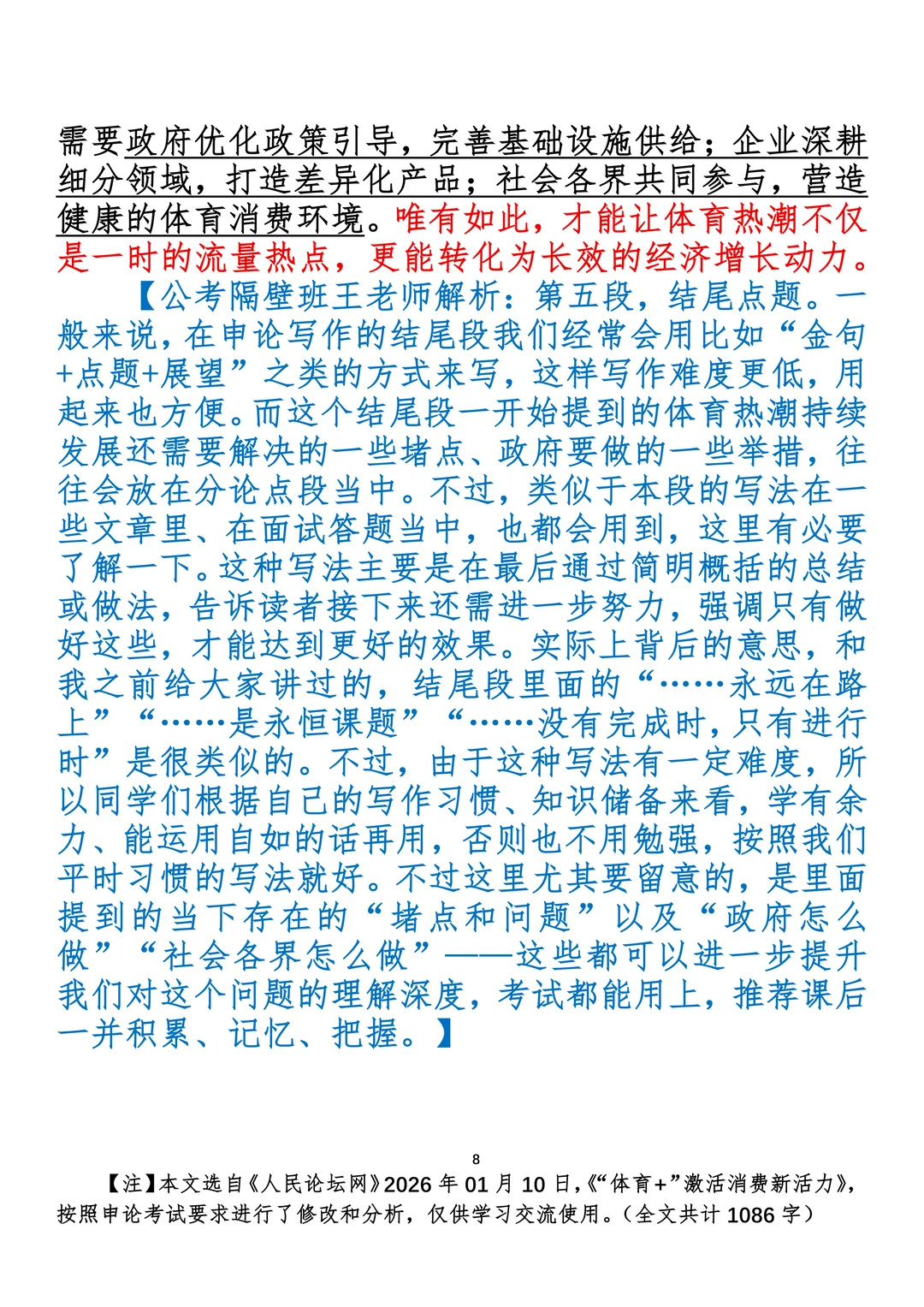如何抄写:每日抄写文章发在“公考隔壁班王老师”账号,红色字是重点句和结构句,黑色字是正文,蓝色字是解析,大家抄写时不必抄蓝色字。建议先通读全文,做到心中有数再开始抄写,效果会更好。 关于文章:抄写文章来源于人民日报,但每篇文章我都根据申论考试要求进行了修改:一是重写或修改开头、结尾;二是统一段首句句式结构;三是调整段落字数,使文章结构更均衡;四是简化复杂长难句,使之更具可模仿性。每篇文章无论修改多少,都是基于申论考试要求,毫无对人民日报文章品评之意。(此处致敬人民日报)