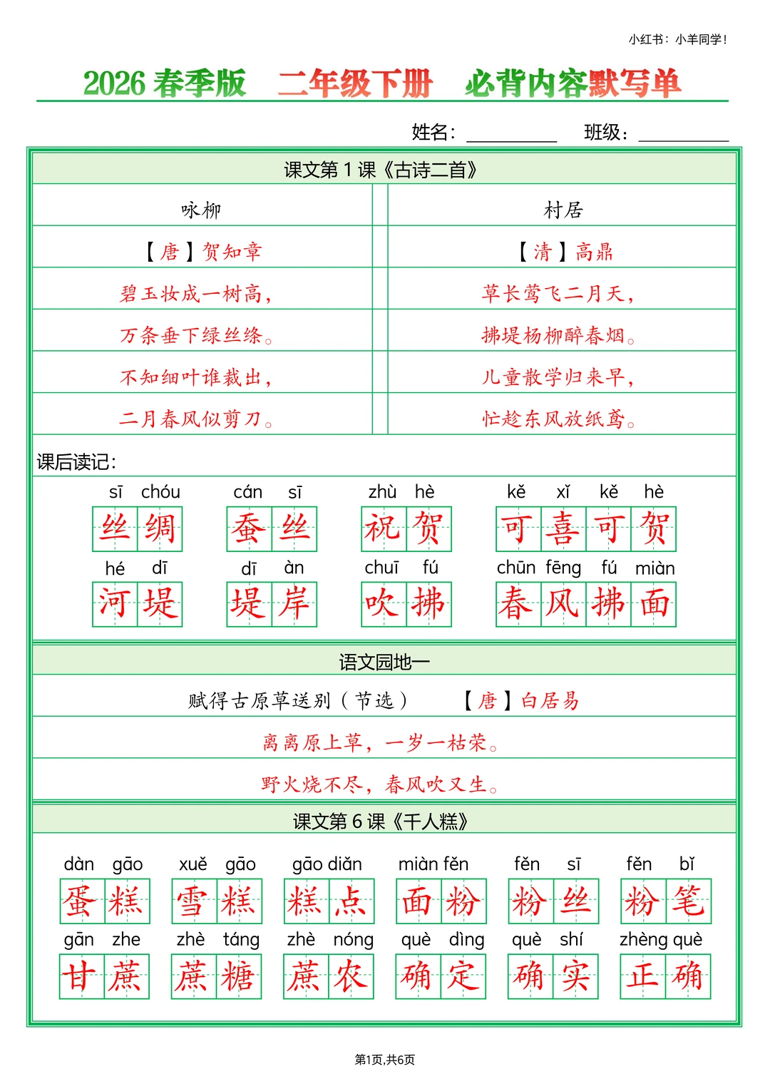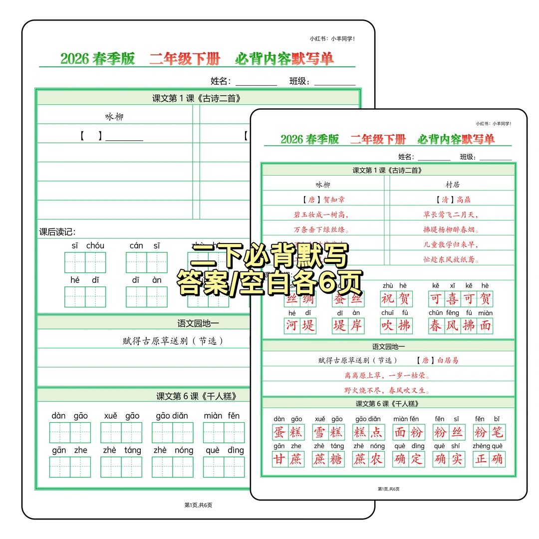 二年级下册必背内容默写填空整理好了 是2026春季版啦~改版后新课标的! 划重点!所有必背内容都包含在内~ 虽然三下必背的不算多,但确实有点琐碎😅 贴心准备了两份: ✅空白版(6页):用来默写超方便 ✅答案版(6页):对照检查更省心 有了这两份,娃的必背内容掌握起来事半功倍~ 需要的宝子左下角店铺获取~ ⚠️原创整理,禁止转载发布网络平台。