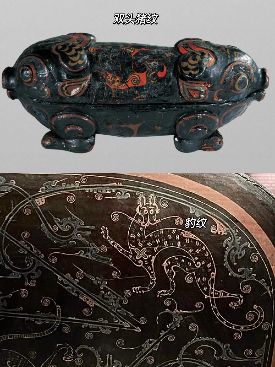 双头猪在古代神话里象征丰收,荆州楚墓出土的猪形漆盒便是头尾均为猪头的设计,圆润的前爪、鼻子、眼睛和耳朵,让它们看起来十分讨喜。