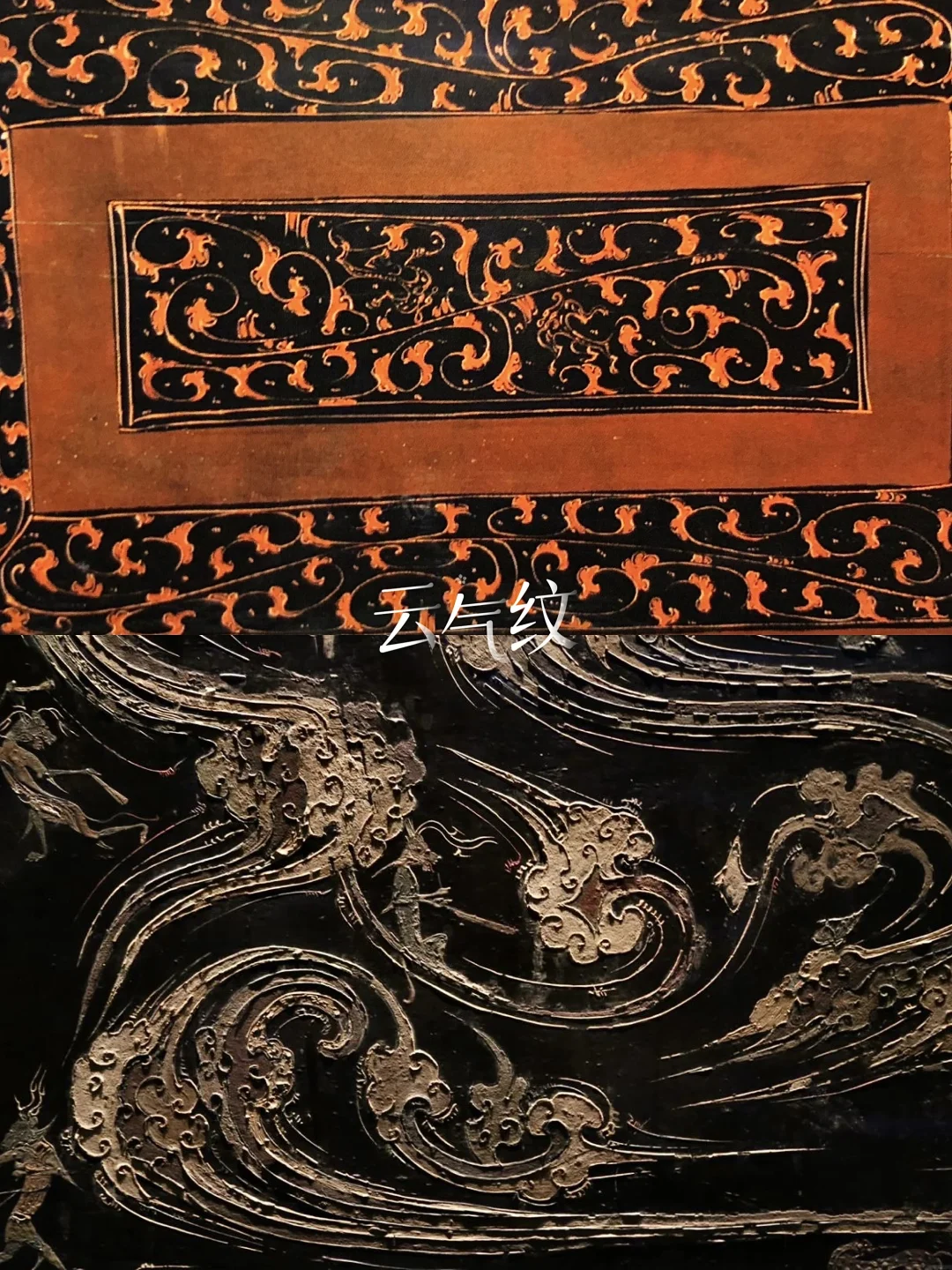 因此,云纹是汉代漆器运用最多的装饰。有的云纹以线连接,连接处生长出浪花,骨骼轻盈飘逸。