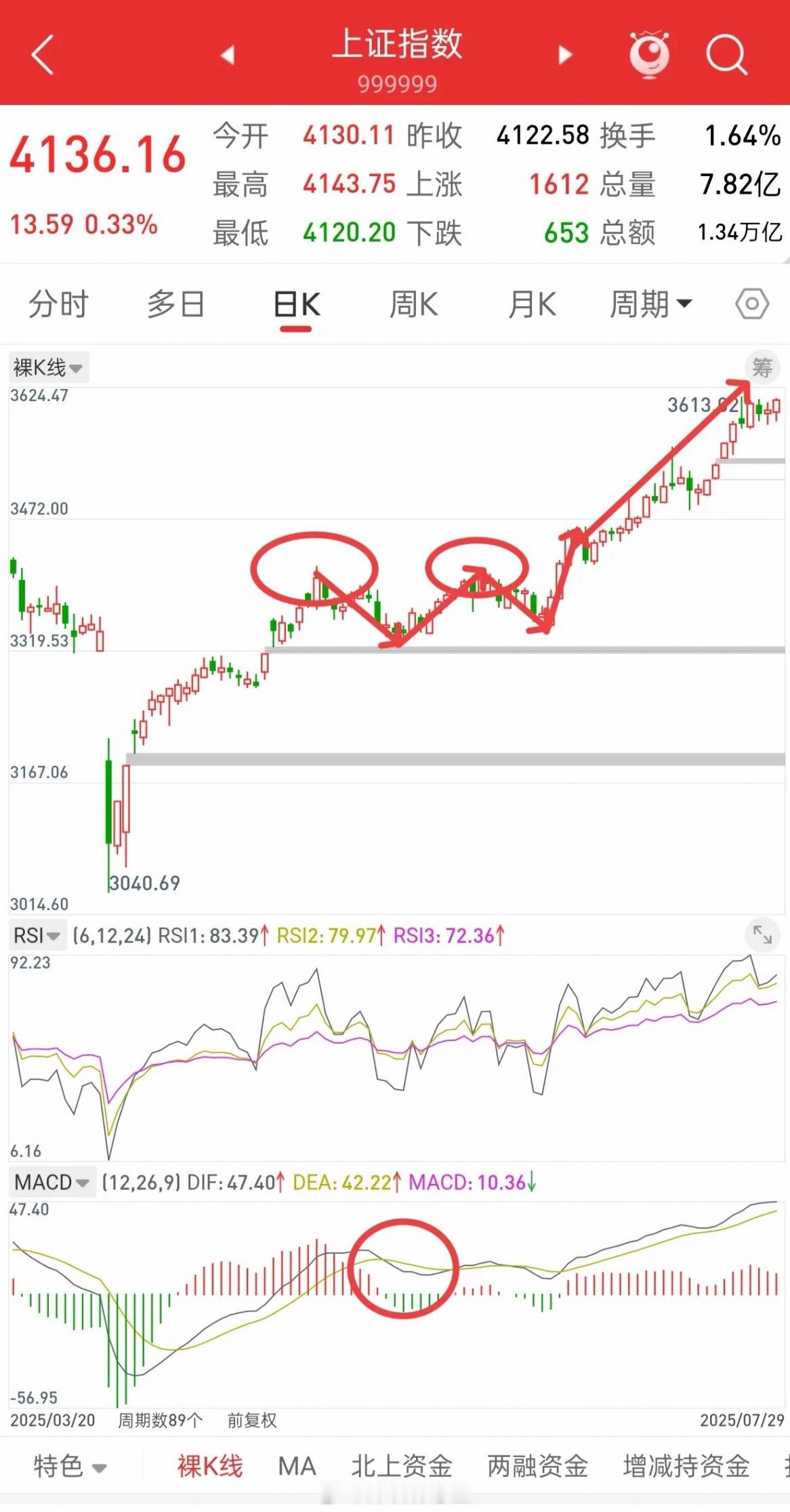 A股,后市行情展望!谈一谈个人看法,我认为大盘当前的位置,可以看成去年五月底的走势,后面很可能震荡上行,接近前高4190的时候,比如4180左右,再来一次温和的二次探底。二次探底的底,甚至不会低于4080,最后再开启新一波慢牛。去年五月底的时候,前高3417,后面下跌,打几个低点3332/3336/3340,然后震荡上行,接近前高,打一个高点3413,后面再二次探底,低点3347,高于前面的低点,随后开启慢牛。当下MACD指标,前面零轴下金叉,到目前零轴上死叉迹象,和去年五月底很像。富时A50股指期货,去年五月底也是一直砸盘,现在富时A50股指也一直砸盘。所以,综上,历史或许总是惊人的相似,后市可以参考。