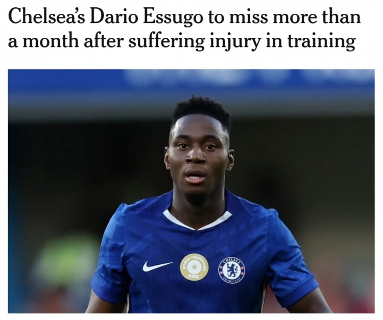 直播吧1月24日讯TA报道,切尔西中场埃苏戈在训练中意外受伤,将缺席一个多月。