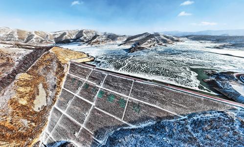 1月16日拍摄的国网新源河北丰宁抽水蓄能电站上水库。