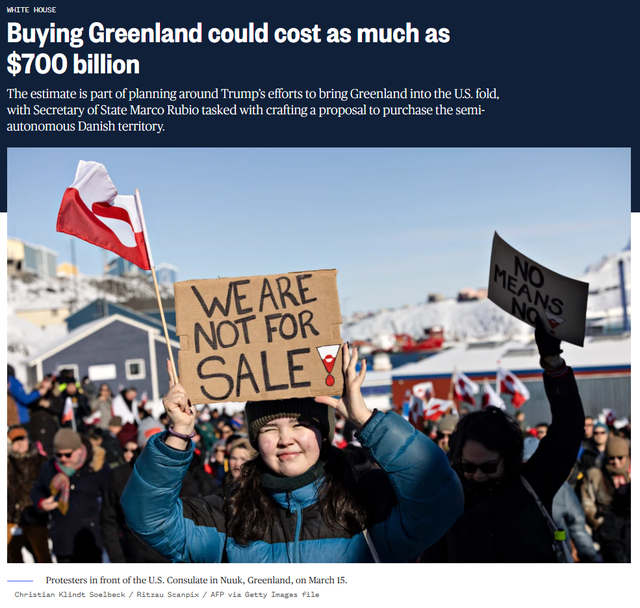 -所谓“美国即将敲定高达7000亿美元的现金收购方案,从丹麦手中直接购买格陵兰岛”的说法不可信。“7000亿美元”这一数字仅为“学者和前官员”做的成本估算,尚未以任何书面形式获得美国国会的认可。