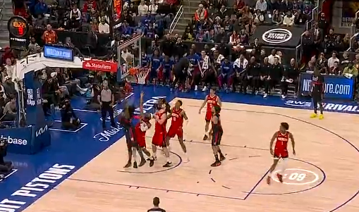 比赛的第四节,斯图尔特篮下强打攻进2+1,活塞打出一波10-1火箭叫停。