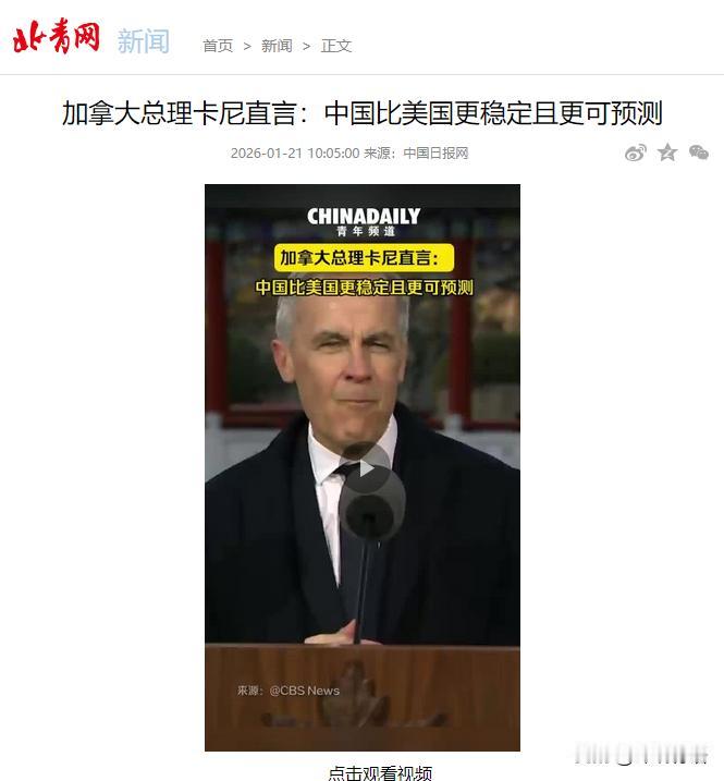加拿大总理卡尔对全世界说了一句大实话,中国虽然在经济上赶不上美国,但是胜在稳定,我们能预测到中国的行为,却预测不到美国的行为。 卡尼可不是普通的总理,他没上台前,当过加拿大银行和英格兰银行的行长,还是第一个非英国人当英央行行长的人。2008年全球金融危机、英国脱欧后的金融乱局,他都是亲身经历、亲手处理的人。他比谁都清楚,国家做事稳、政策不瞎变,对经济有多重要。 加拿大这些年,就是被美国的“没准头”坑惨了。加拿大的经济早就和美国绑死了,美国每年从加拿大进口62%的石油,曾经进口天然气的比例更是高达90%,连1.9%的电力消费都要靠加拿大供给,说加拿大是美国的“能源后院”一点不夸张;美国还是加拿大最大的投资方,四千亿美元的投资,直接关系着加拿大两百万人的工作。 可依赖越深,被拿捏得就越狠! 最典型的就是打了几十年的美加“木材关税战”,简直是美国政策反复无常的活教材。 早在上世纪80年代,美国就拿加拿大软木开刀,指控人家有“不公平竞争”,一言不合就征15%的关税。后来加拿大不服,闹到国际专家组,几番裁决都是美国败诉,可人家根本不认账,换个由头又要成立新委员会调查,硬生生把加拿大耗得没脾气。 1996年好不容易签了协议,规定配额内免税、超配额高关税,结果协议一到期,美国立马又掀桌子,新一轮反倾销、反补贴税说加就加,税率最高冲到18.79%。 加拿大再申诉再胜诉,美国还是能拖好几年才勉强退点税款,这期间加拿大木材企业倒闭、工人失业的损失,美国半分都不承担。这种“输了官司不输霸道”的操作,让加拿大彻底明白,美国的规则只对自己有用。 卡尼说“能预测到中国的行为”,这话可不是客套。2025年中国GDP总量约20万亿美元,虽然还不到美国的三分之二,但全年增速5%,呈“前高后稳”的态势,一季度5.4%、二季度5.2%、三季度4.8%、四季度4.5%,波动幅度极小。 反观美国,经济增长全靠消费和金融撑着,政策一松一紧就剧烈波动,2019到2024年实际GDP复合增速才2.45%,还不如中国的一半。 更关键的是中国的政策可预期性,五年规划定好的目标,一步一个脚印推进,哪怕遇到外部冲击,也不会轻易推翻既定方向。比如近年制造业投资虽然增速放缓,但高端制造的投入始终稳步增加,进出口总额在全球外需疲软的情况下还能增长3.8%,这种“稳”不是停滞,而是有底气的从容。 美国的“不可预测”,本质上是把盟友当筹码、把规则当工具。卡尼就公开批评过,美国把经济一体化当成“武器”,动辄用关税威胁盟友,哪怕自己GDP可能因此削减5%,也在所不惜。 加拿大就是最好的例子,跟着美国制裁这个、封锁那个,结果孟晚舟事件让自己陷入外交困境,贸易上被美国反复收割,如今出口占比持续下滑,经济主动权越来越少。 反观中国,不管是扩大对外开放,还是推进“一带一路”,政策始终如一,哪怕和美国有贸易摩擦,也不会轻易改变发展路径,这种稳定性让包括加拿大在内的很多国家都看在眼里。 卡尼的话,其实说出了很多中等国家的心声:在全球化时代,比起一时的经济规模,稳定的预期才是稀缺资源。 美国就像个脾气暴躁的老板,跟着他可能赚快钱,但随时可能被甩锅、被牺牲;中国则像个稳健的伙伴,步伐不算最疾,但每一步都扎实,让人心里有底。加拿大如今拼命降低对美出口依赖,转头加强和中国的贸易往来,就是用行动投票。 说到底,经济合作的核心是互信,而互信的基础是可预测性。美国总想着靠霸权拿捏别人,却忘了盟友不是任人宰割的羔羊;中国靠着稳定的政策和行事风格,慢慢积累起国际信任。 卡尼这句大实话,既是对加拿大过往遭遇的总结,也是给全球经济敲了个警钟:靠强权维系的关系终会松动,唯有稳定才能走得长远。