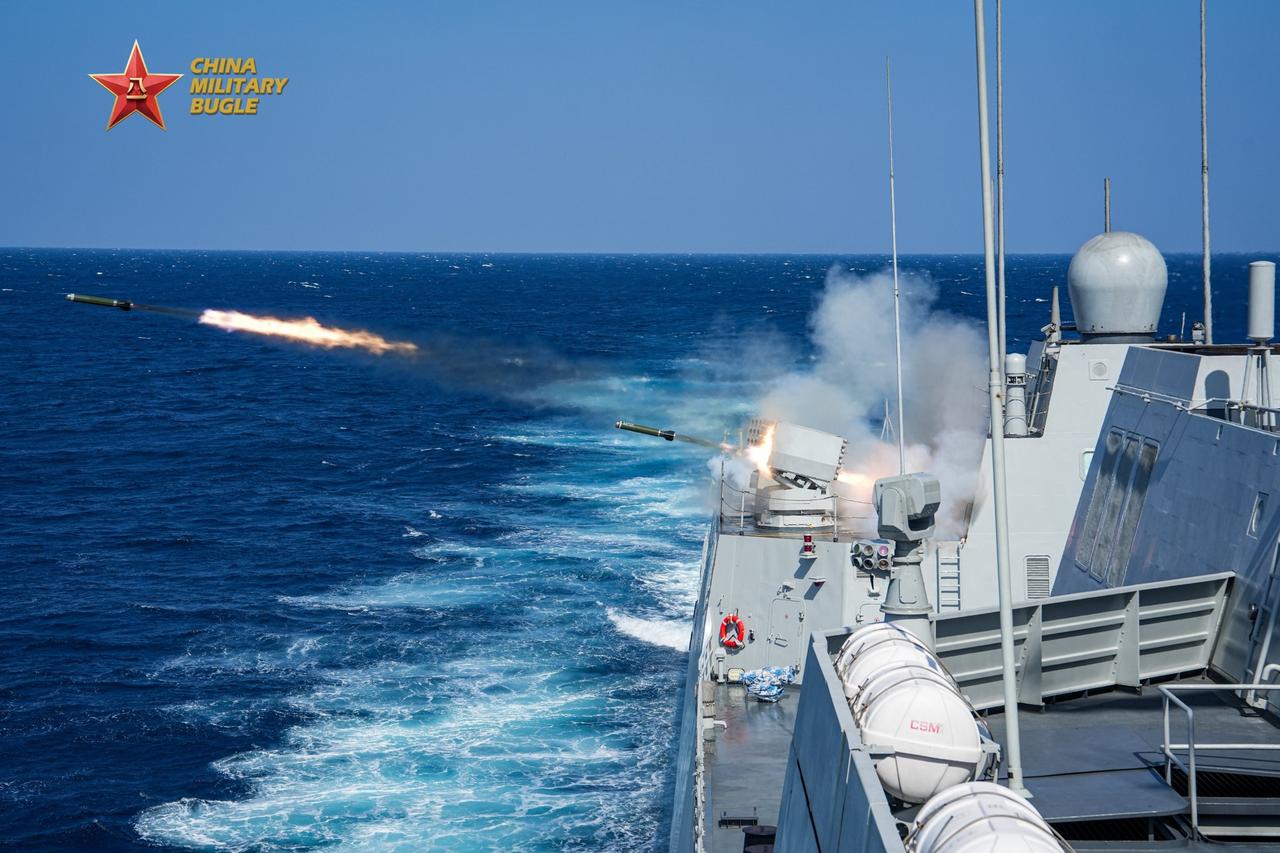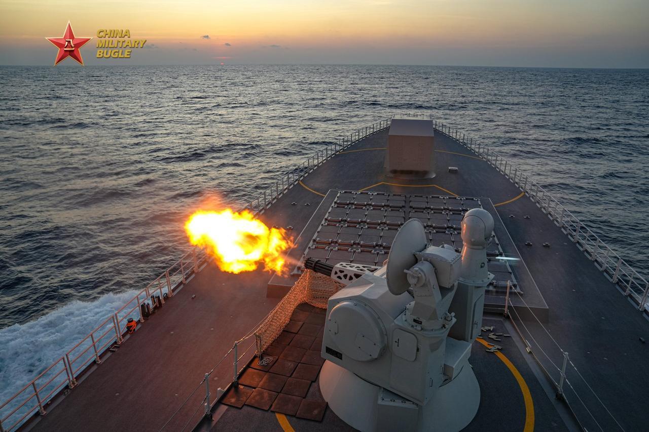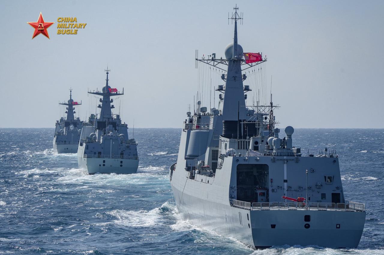 官媒发布,解放军海军在南海进行的高强度、全天候演习。 参加演习的舰艇有:055大