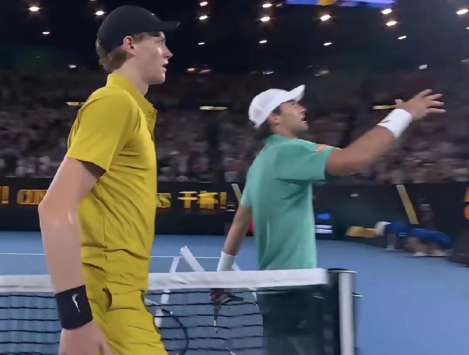 头号种子辛纳3-1击败斯皮泽里,豪取澳网17连胜! 上一轮差点输给吴易昺的斯皮泽里第三轮碰上了世界第一辛纳。以6-4先胜一盘,从辛纳手中抢得1分。 辛纳稳住阵脚后,以 6-3, 6-4 ,6-4,连胜三盘,以3-1有惊无险击败斯皮泽里,晋级16强。 这一仗,贵为头号种子的辛纳面对排名85位的选手,赢得并不轻松。 吴易昺上一轮对斯皮泽里,连追二盘、扳平比分后,决胜盘开始阶段并不落下风,连续2局逼出破发点,可惜后来腿抽筋体能不支惜败。 否则,吴易昺今天站在中心球场与世界第一辛纳隔网相对,该是多么荣耀的高光时刻啊!