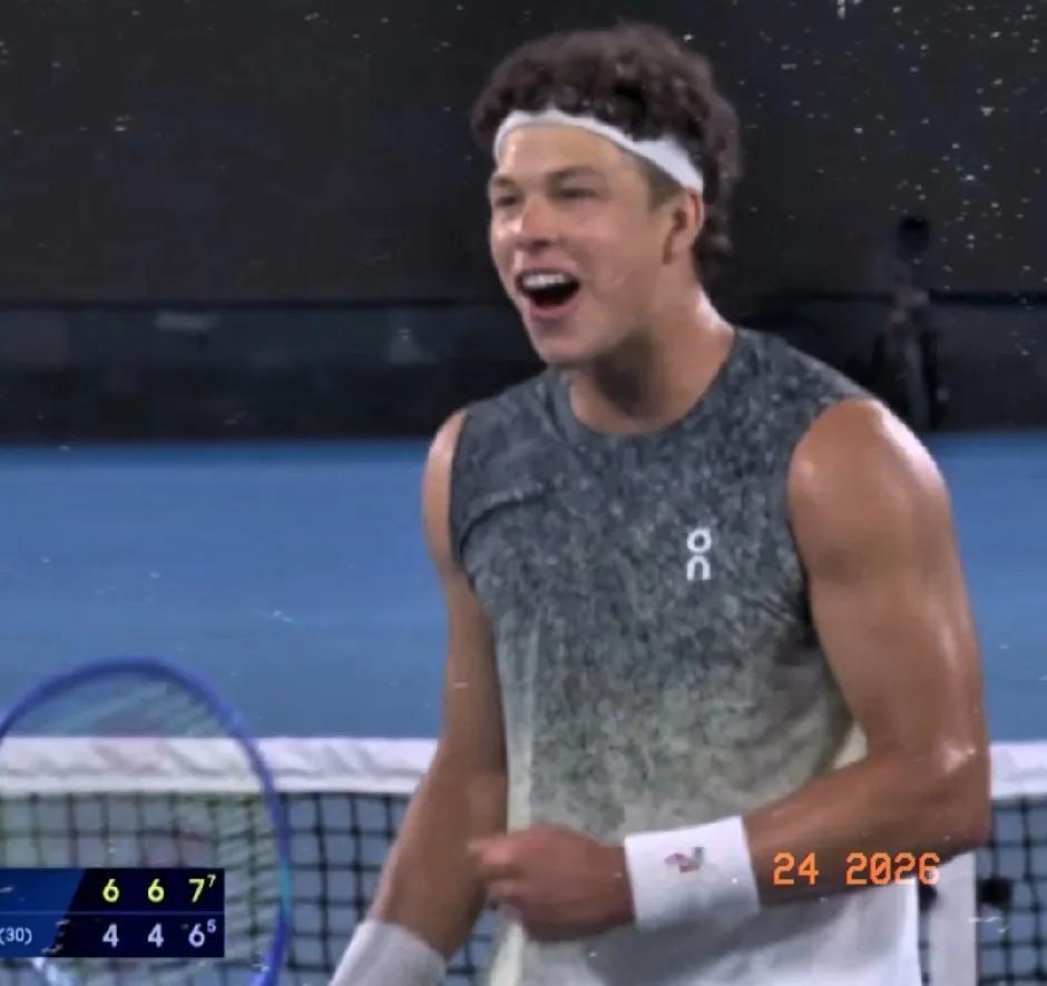 澳网渐入佳境。 8号种子谢尔顿第三轮对阵30号种子舍瓦罗。 前二盘顺风顺水,谢尔顿以6-4相同比分,连胜二盘,大比分2-0领先。 第三盘,双方拼争更趋白热化,6-6平进入抢七大战。 抢七3-3交换场地,双方又战至5-5。 舍瓦罗关键时刻发球双误铸大错,送出赛点,谢尔顿顺势拿下最后1分,7-5抢七胜出。 大比分7-6(5)赢下第三盘。 总分3-0横扫,昂首闯入16强。