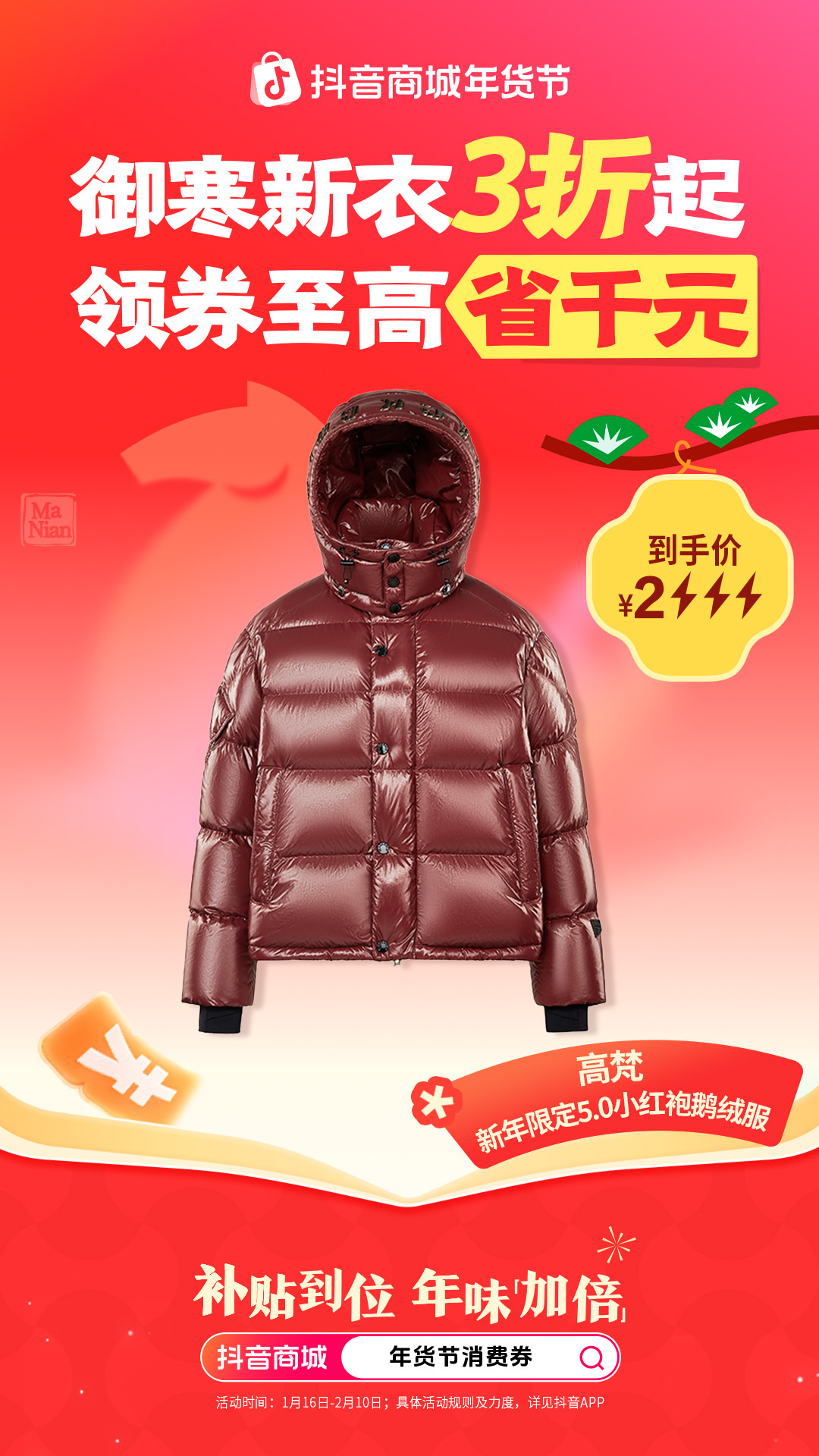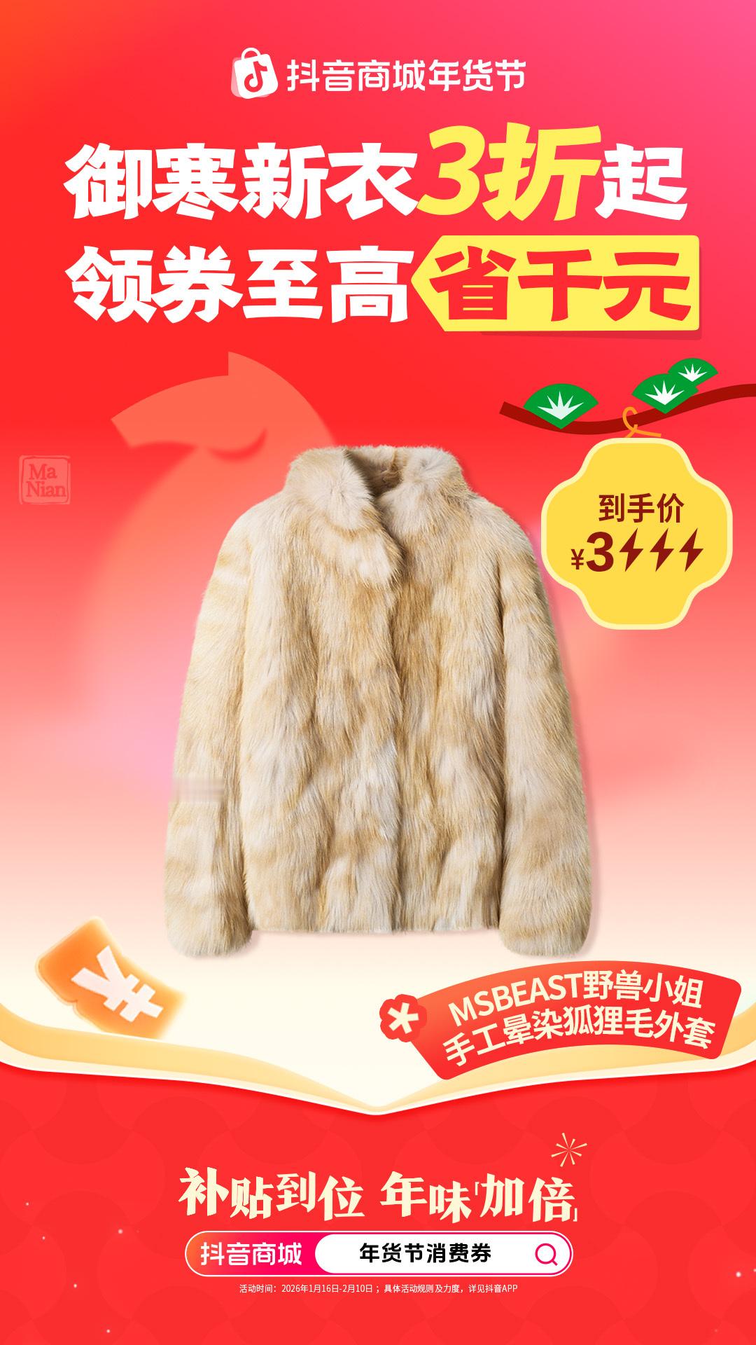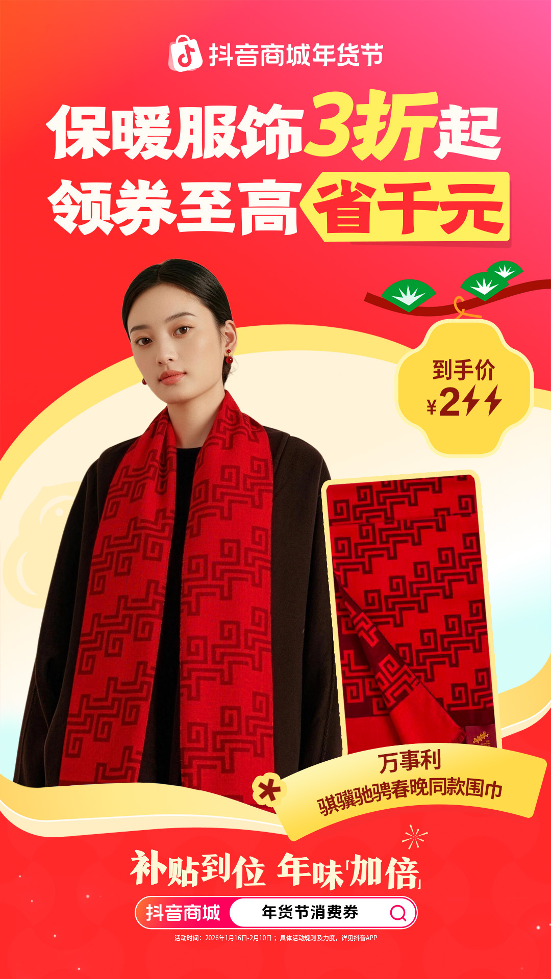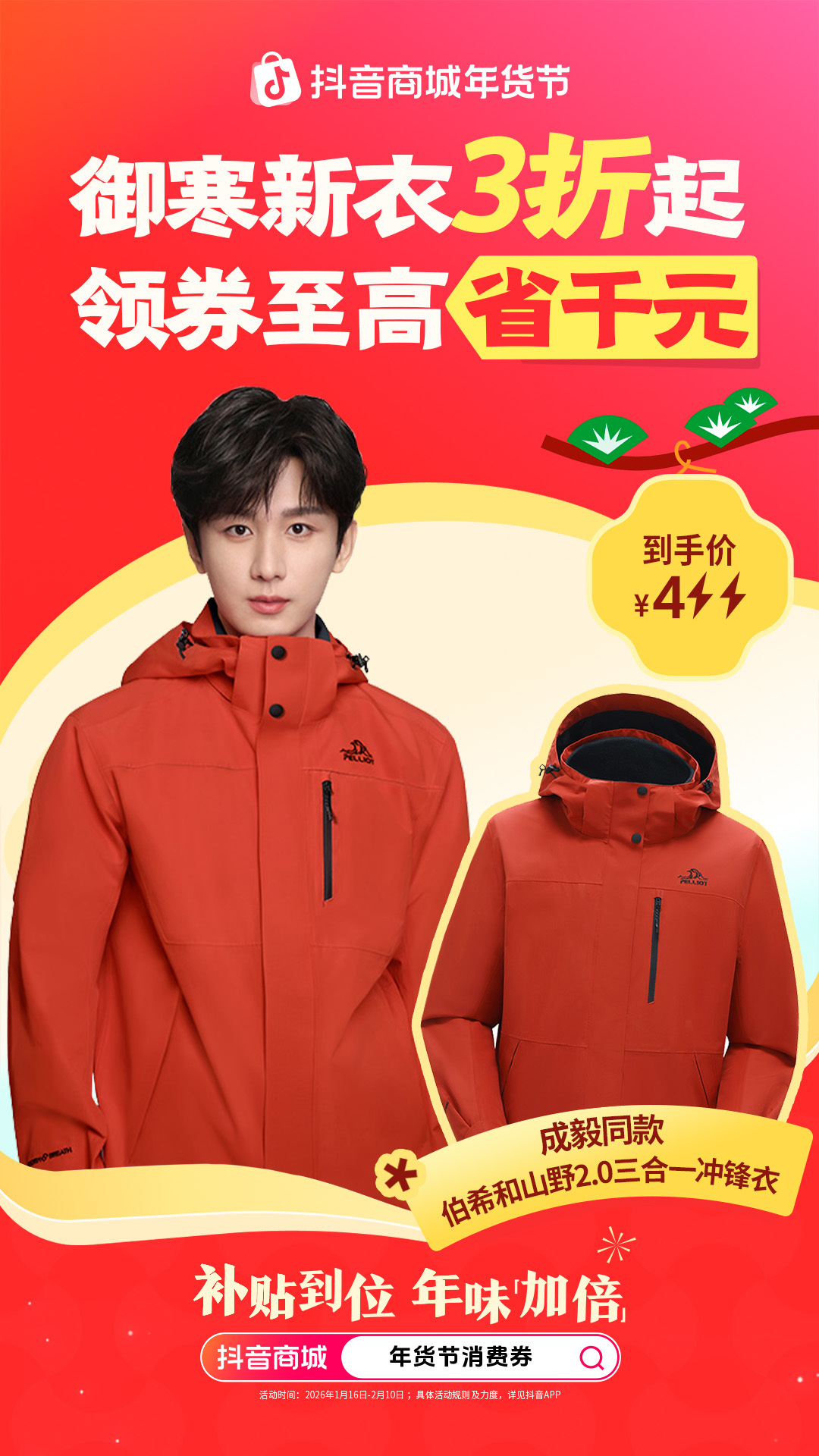 天冷请到抖音商城年货节加衣冷空气来了,但精致生活不能停!野兽小姐狐狸毛外套一披,贵气值拉满;蕉内热皮套装打底,暖到忘记真实温度;王一博同款鸭鸭羽绒服+成毅同款伯希和冲锋衣,城市通勤、闯荡山野都能切换自如!上抖音搜「年货节消费券」,消费券人人可抢,领券至高省千元,还有「惊喜券」随机掉落,精致女孩的省钱秘诀,就是来抖音商城年货节,御寒新衣3折起,食品酒水、数码家电、美妆珠宝等品类也有超值优惠。