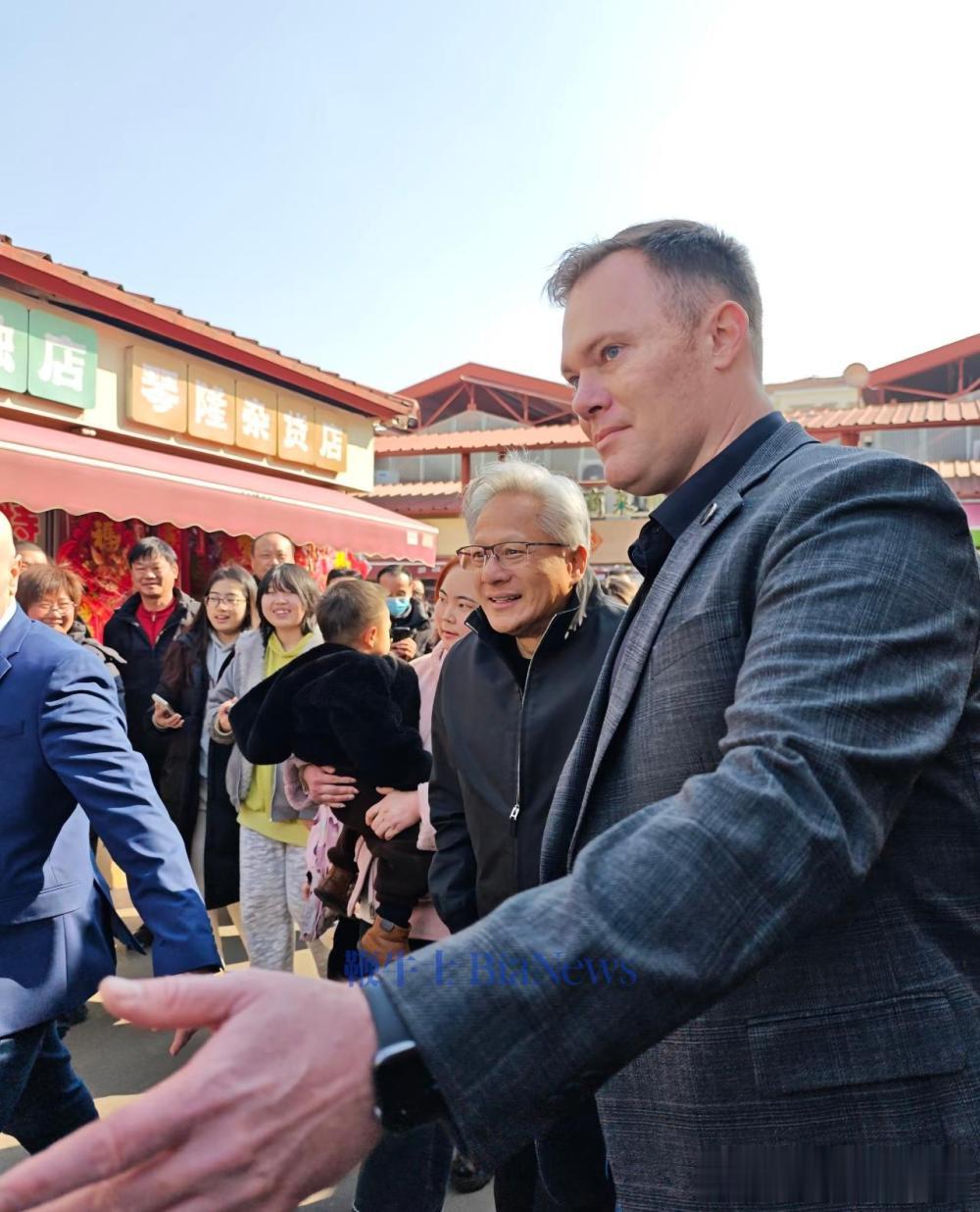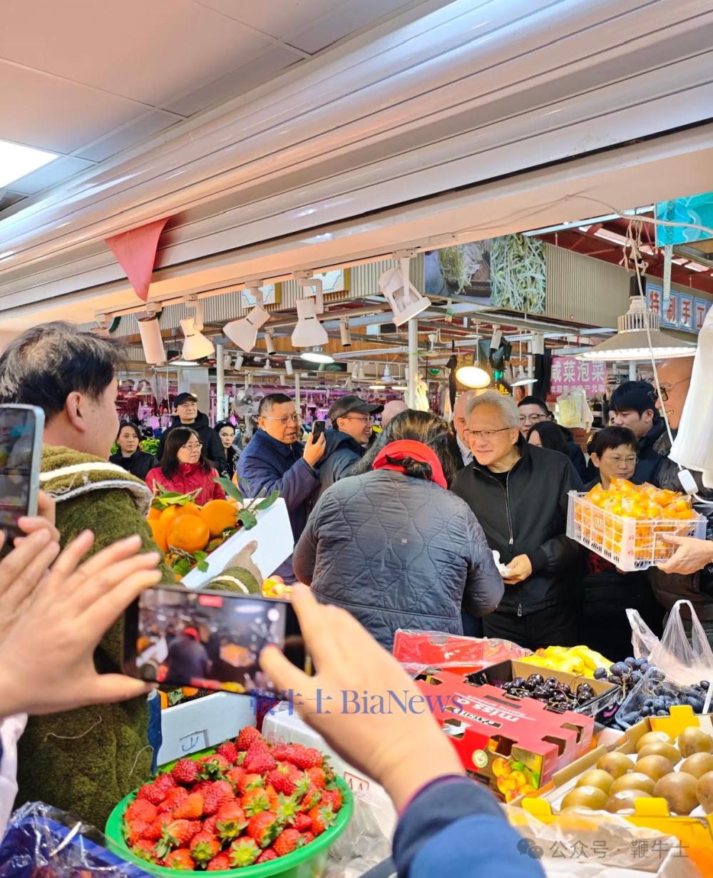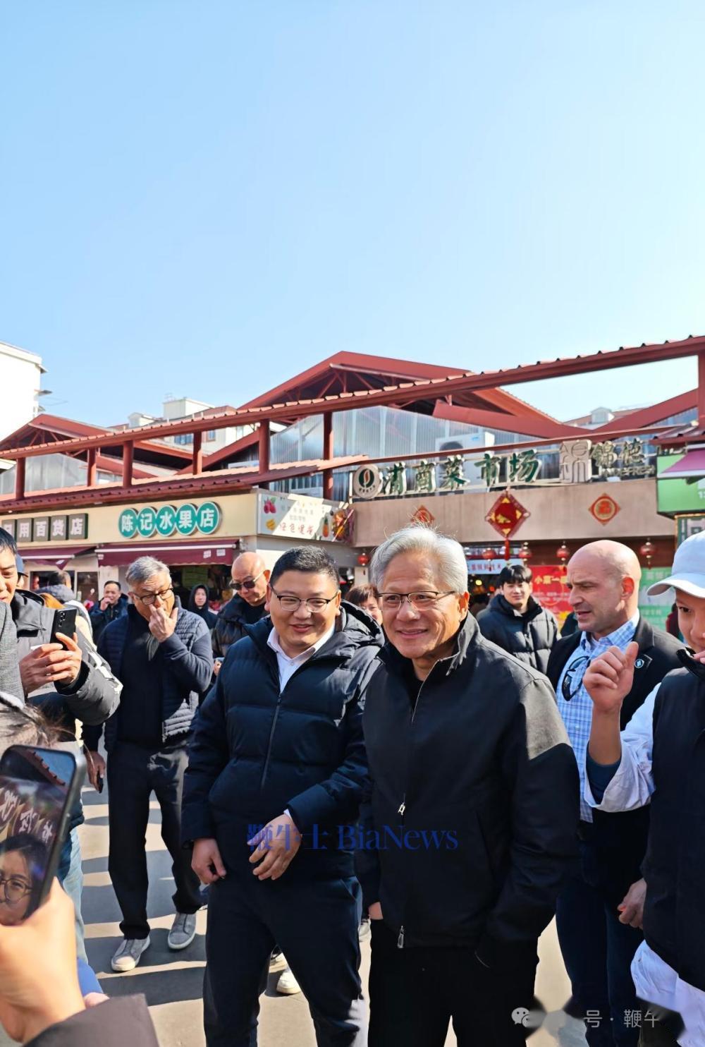 今日,黄仁勋现身陆家嘴街道乳山路锦德菜市场,体验上海市井风俗。