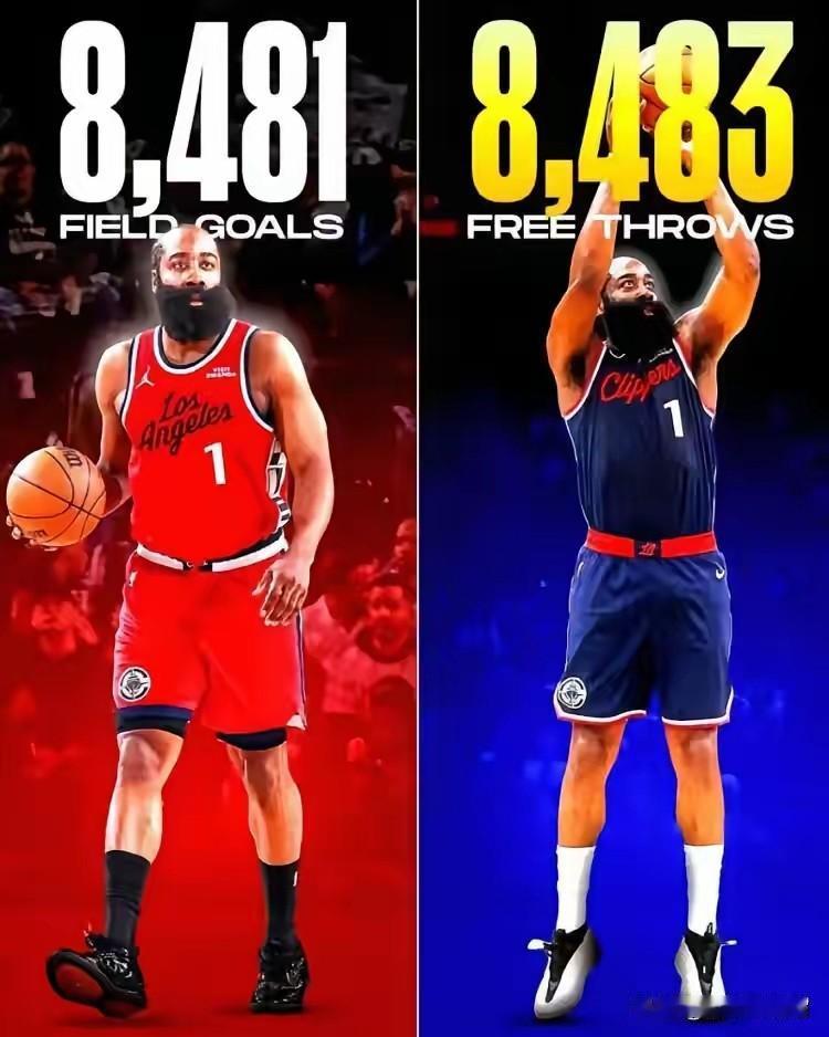 哈登威武啊,不愧是现役第一双能卫,没有之一。 据统计,哈登个人职业生涯罚球命中数已经来到8483个,生涯个人投篮命中数8481个,罚球比投篮命中数还要多2个,这也太威武了吧。 做为哈登的忠实球迷咱有一说一,要不是生涯初期在雷霆打了几年替补,现在早就30000分妥妥滴了。真是太威武太雄壮了,就差一个总冠军,相信哈登早晚的能够如愿以偿!!
