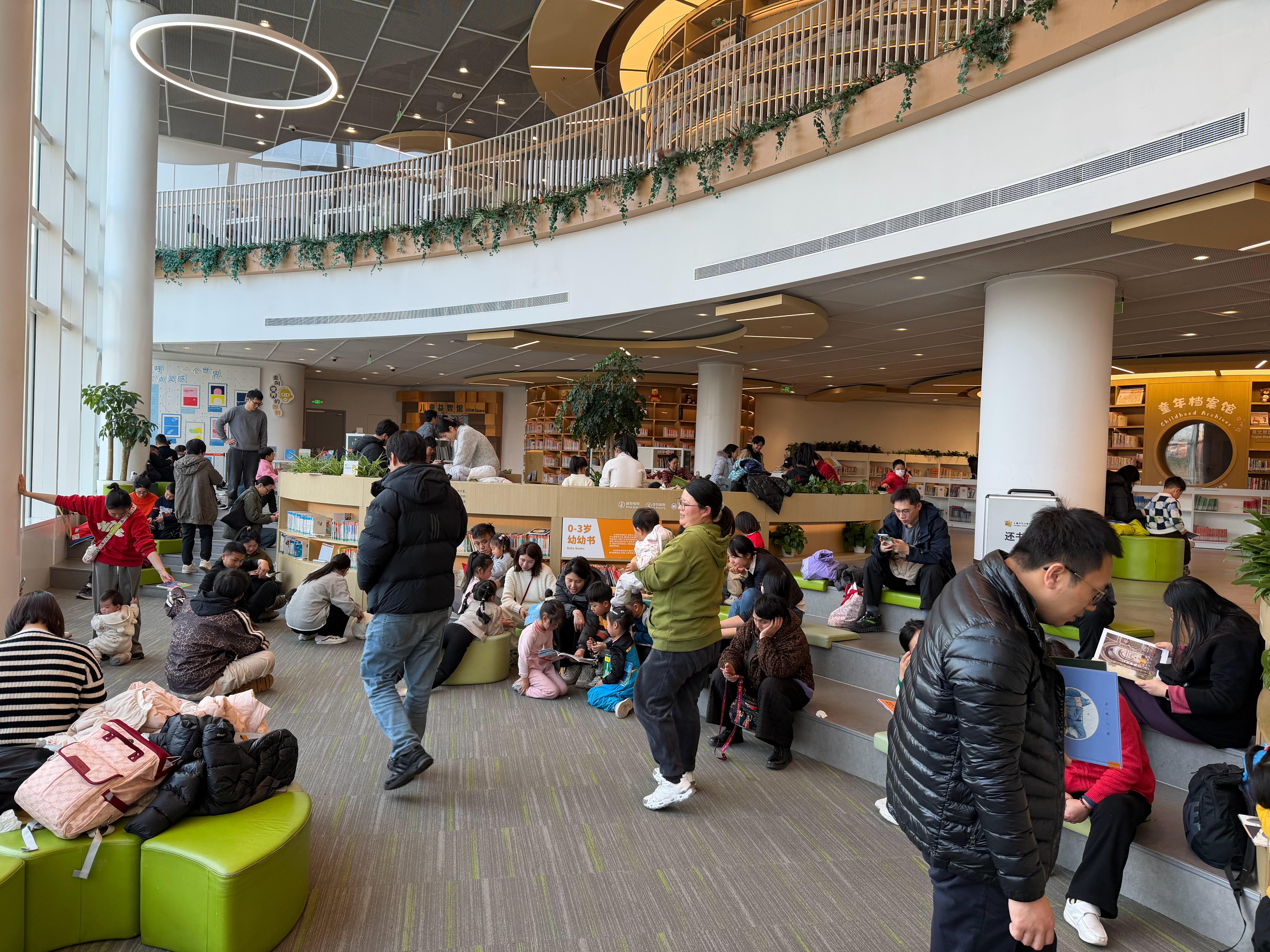 周末的儿童图书馆人真的多,这里带娃比在商场里氛围好现在图书馆很细节啊,借书还提供