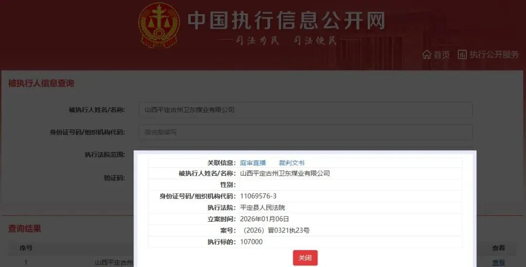 [山西鹏飞卫东煤业又成为被执行人,标的:10.7万元!]