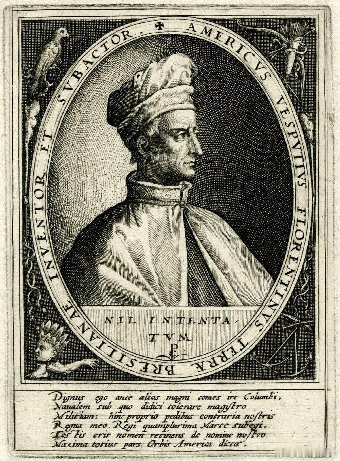 西洋历史文化鱼缸 历史知识 德意志地图学家马丁·瓦尔德泽米勒(Martin Waldseemüller,约1470年—1520年)1507年出版的世界地图,即瓦尔德泽米勒地图(Waldseemüller map)。这幅地图的一大特色是它首次用阿美利加(得名于意大利航海家亚美利哥·韦斯普奇,图2)来称呼新大陆,并沿用至今,而当时许多欧洲人相信美洲是亚洲的一部分,此外,他也正确画出了独立的太平洋。瓦尔德泽米勒的地图上,北极没有大陆,而是一片海洋,也是正确的。此地图仅存留一份,美国国家图书馆收藏。