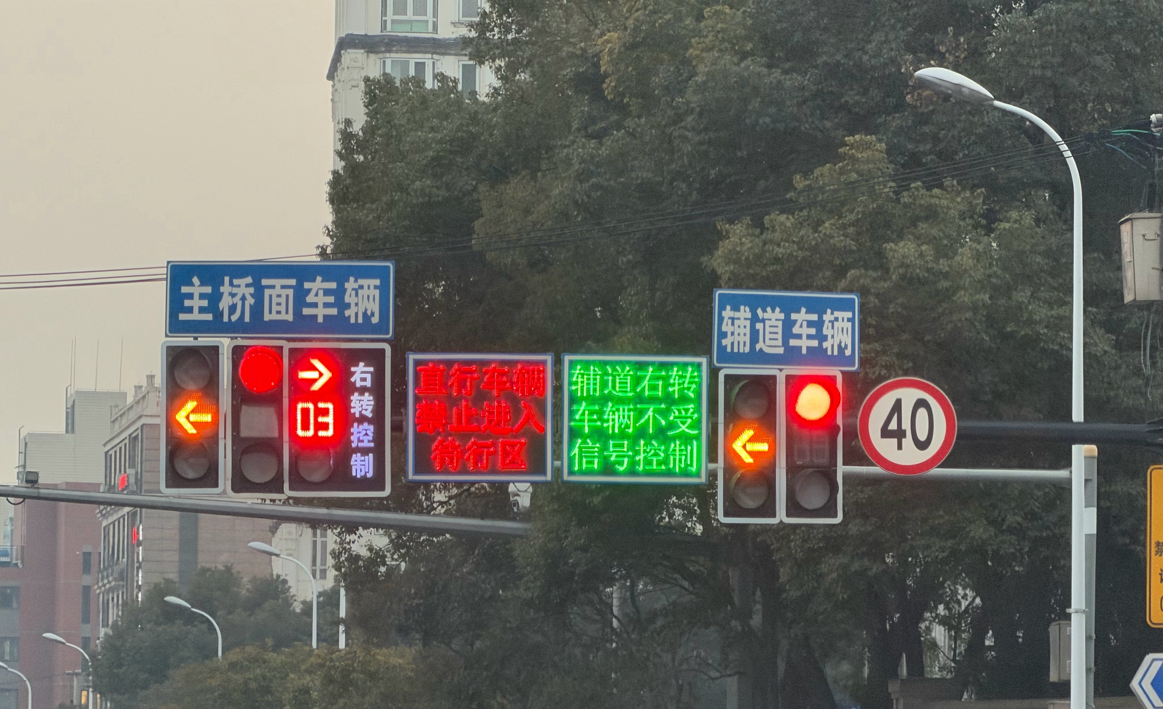 这个路口的交通信号灯过于复杂,特别是右转的情况,主路有右转信号灯控制,辅道不受右转信号灯控制,但是开辅助驾驶走在辅道的时候,还是会识别右转红灯,尴尬😳直行工况也复杂,在红灯的情况下会显示“直行车辆允许进入待行区”,辅助驾驶也很难识别到。