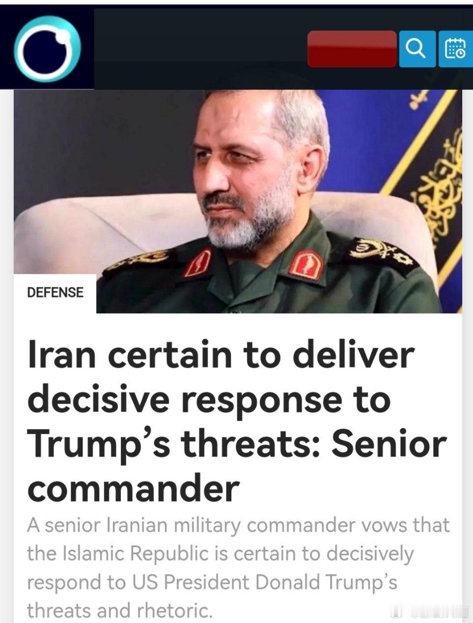 伊朗军方警告随时准备扣动扳机伊朗必定会对特朗普的威胁作出果断回应:高级指挥官表示一名伊朗高级军事将领誓言称,伊朗必将对美国特朗普的威胁和言论作出坚决回应。他说道:“特朗普讲话很多,但他应该清楚,最终的答案会来自实地。”这些言论是在特朗普不断升级言辞之后发表的。特朗普威胁称,如果伊朗对自去年 12 月底开始的零星经济抗议活动作出回应,美国将对伊朗采取新的军事行动。(伊朗官网)