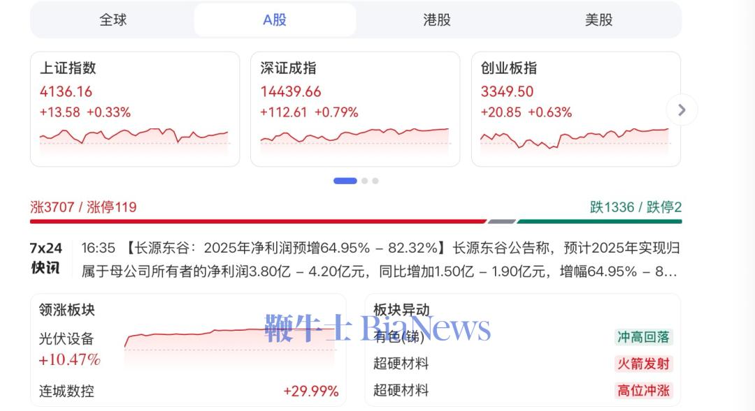 不过,剧情峰回路转,指数尾盘震荡拉升,深成指探底回升,创业板指、深成指均涨超0.5%,北证50指数大涨超3%。截至收盘,沪指涨0.33%,深成指涨0.79%,创业板指涨0.63%。