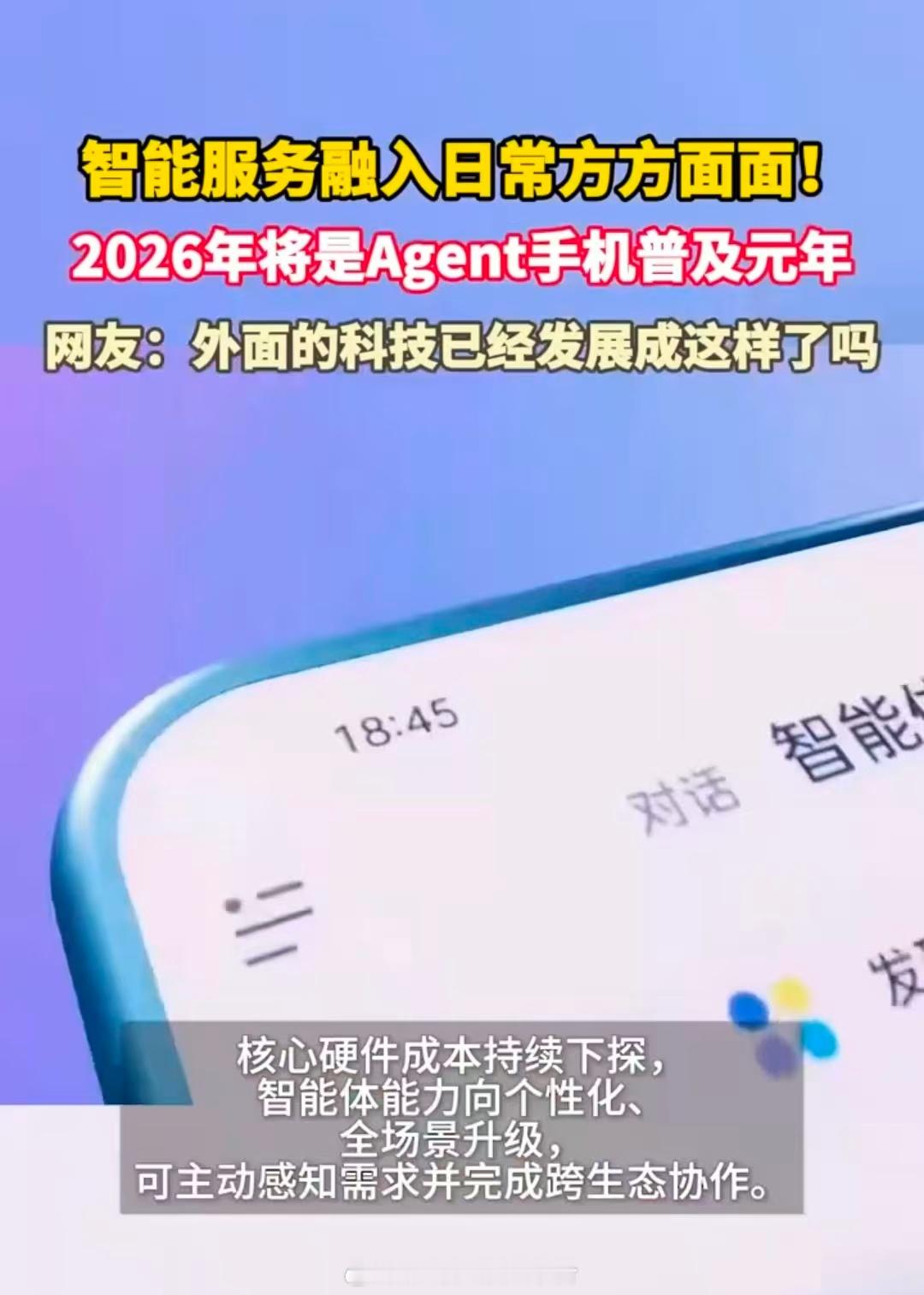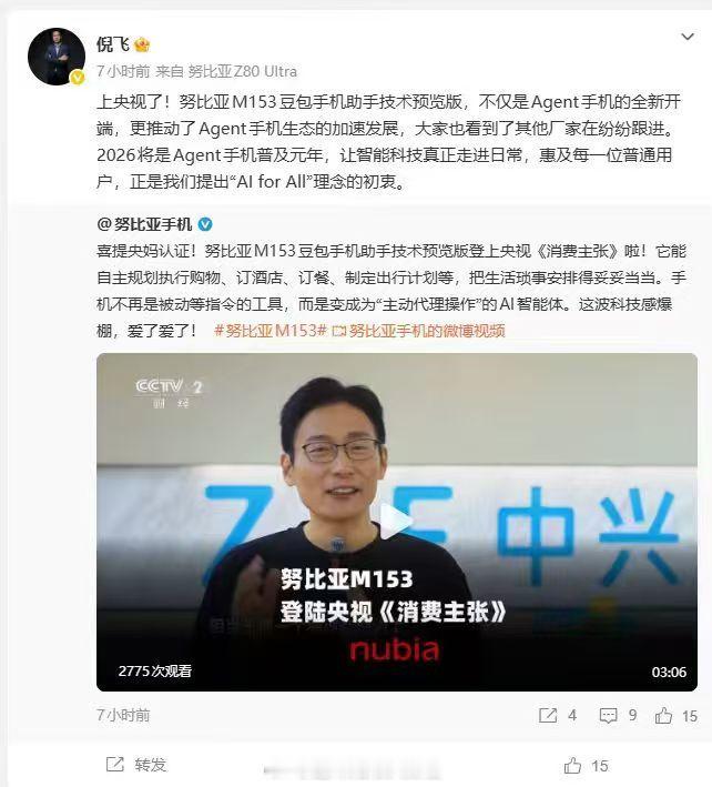 年轻人喜欢点外卖的原因从被动响应到主动代理,手机进化速度超乎想象!2026年有望成为Agent手机普及元年,努比亚M153凭借系统级AI能力出圈,可自动执行订餐、比价、制定行程等复杂操作。倪飞表示,要让智能科技走进日常、惠及普通人。IDC数据更显趋势,国内市占率53%、出货1.47亿台,全球渗透率超38%,AI手机即将全面普及。2026年将是Agent手机普及元年