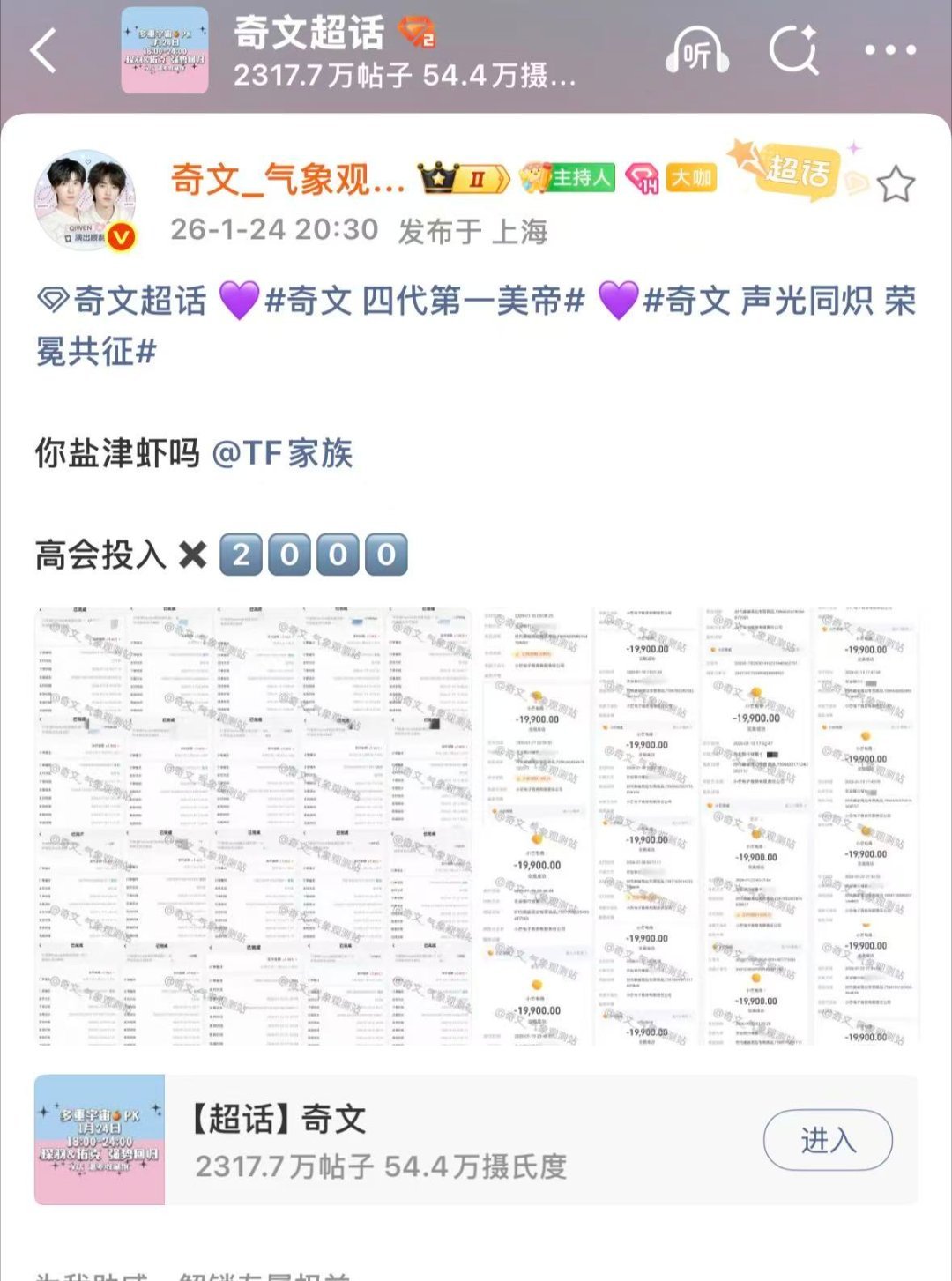 奇文 高会 奇文先是官宣了荣耀之战三处地广应援又有全国100大屏,接着下了2000高会,太有排面了吧,大家怎么看?
