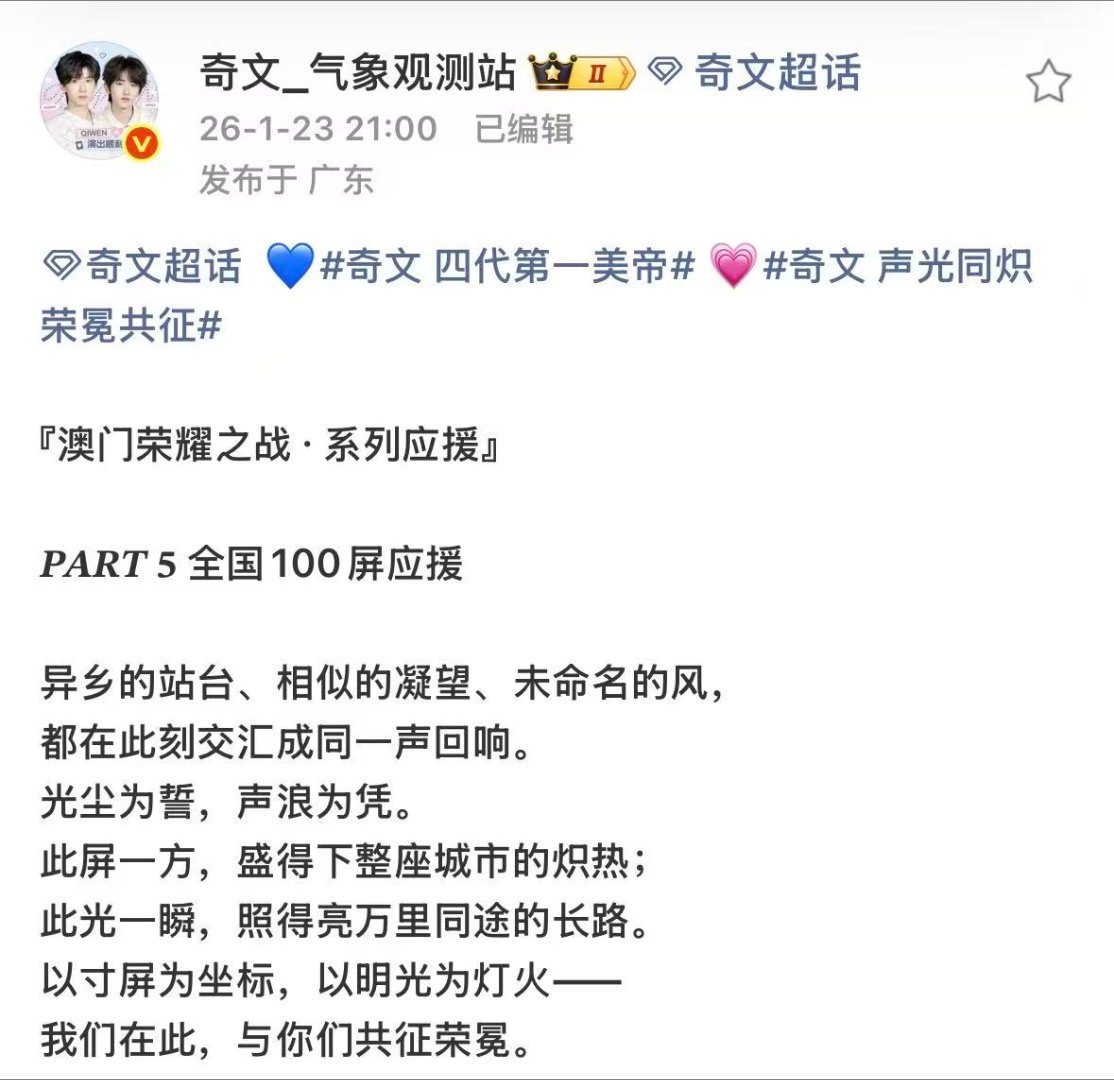 奇文 高会 奇文先是官宣了荣耀之战三处地广应援又有全国100大屏,接着下了200