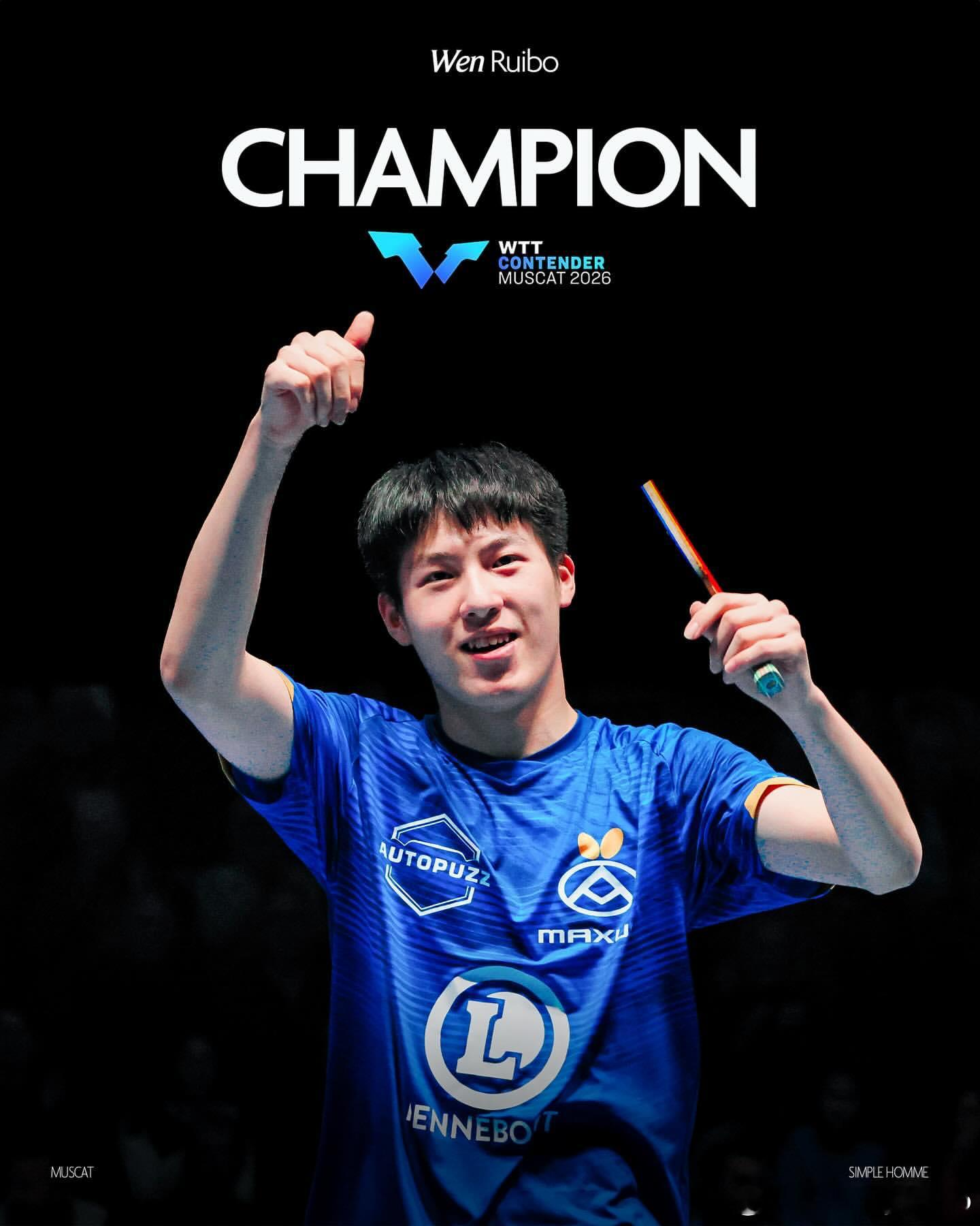 温瑞博男单夺冠温瑞博首个WTT男单冠军头衔🏆亨尼邦俱乐部也发布了贺图