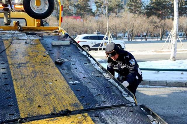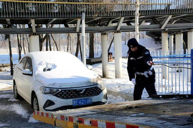 在丽江路民警还发现一辆黑E621A*号小型汽车,车身被厚厚的积雪完全包裹,车窗、车顶积冰厚度达数厘米,车轮与地面接触处已被积雪压实,明显长期处于闲置状态。随后,交管部门通过车辆登记信息多次联系车主,尝试电话、短信通知等方式均未取得回应。为保障道路通行秩序和公共安全,交管部门在现场拍照取证、固定证据后,依法安排拖车将该车辆拖移并妥善存放。