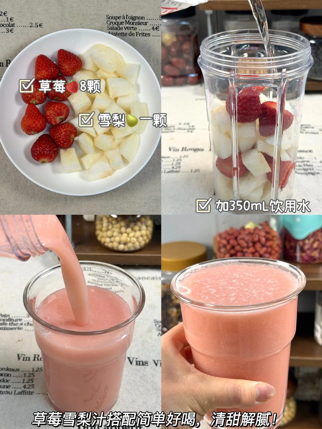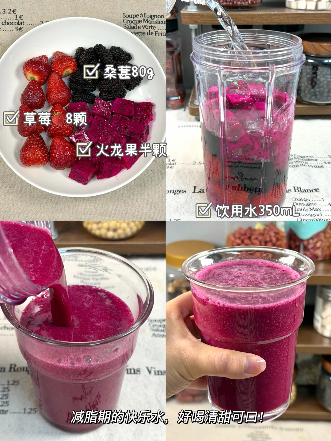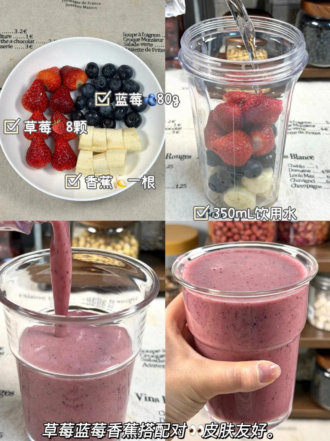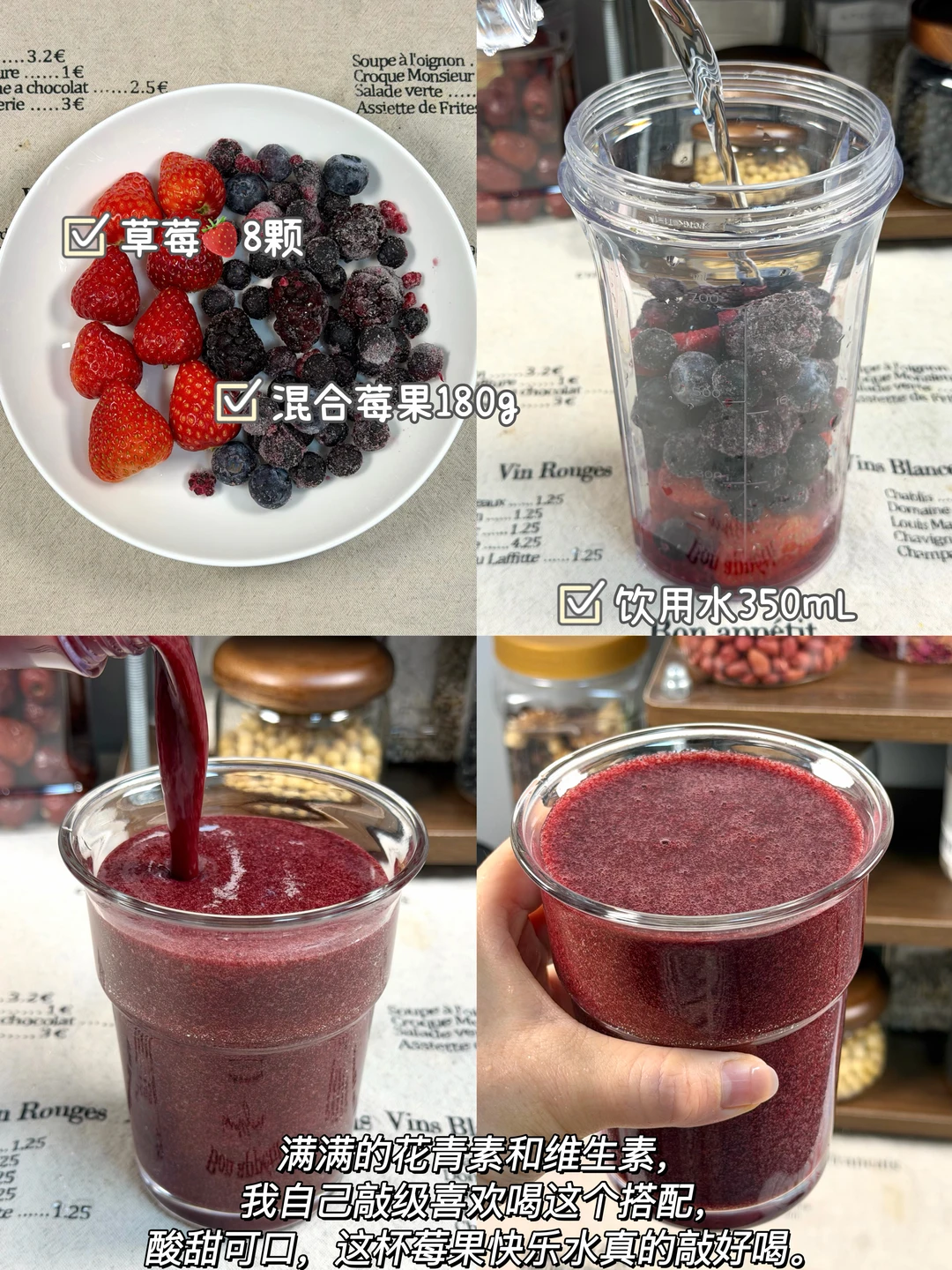 做法真的很简单,所有食材放入破壁机中,果蔬汁模式即可。每款搭配图片上都有[微笑R]
